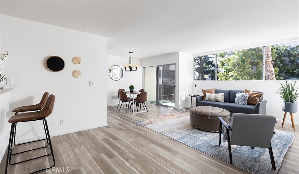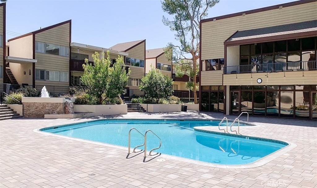 *End Unit* Courtyard Views* Two assigned garage spaces* Upon entry you are welcomed by a bright open living room with walls of windows that frame the picturesque grounds. The private corner Master Suite features a sleek newer vanity, contemporary lighting, & walk-in closet. Additional highlights include updated vinyl plank flooring, newly painted, a handsome bar area, & minimal shared wall space. Laundry room is just around the corner from this unit! Enjoy resort-style complex amenities including an outdoor pool, gym, sauna, clubhouse with game room & onsite staff, meandering pathways, controlled access, & gated covered parking.
