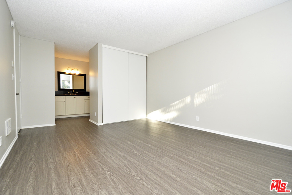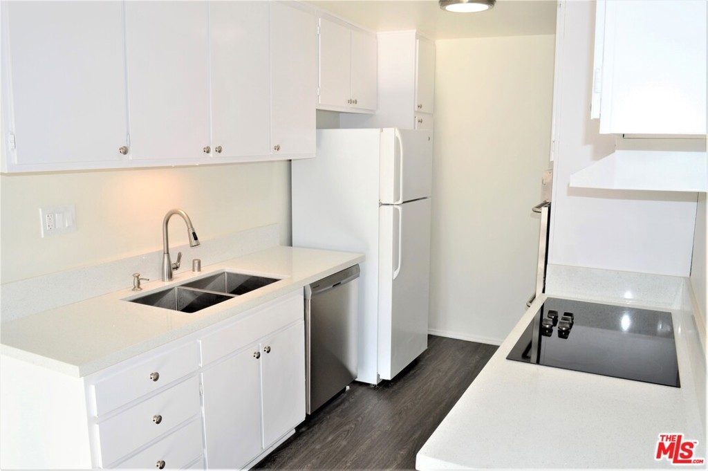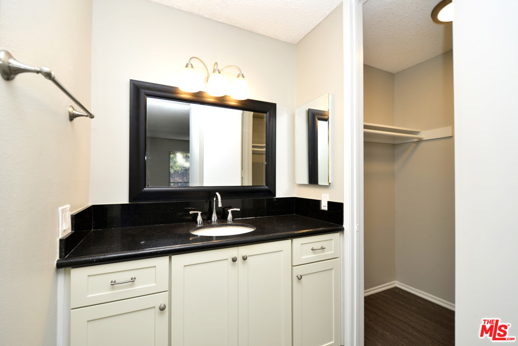 Exceptional value for a welcoming move-in ready property in the popular resort-style 'Pines" complex. Upon entry you are greeted by stylish wide-planked wood laminate flooring, warm and modern color palette, and an open and airy floorplan with a large wall of windows and sliding glass doors. The roomy layout is ideal for entertaining or working from home with a spacious living room, dining area that opens to an outdoor balcony, and inviting galley kitchen with abundant cabinets with contemporary hardware and new quartz countertops, sink, faucet, and stainless steel oven and dishwasher. Both bedrooms are comfortable and private with the primary suite boasting a large walk-in closet and chic vanity area. Bathrooms are nicely-appointed with a brand new shower enclosure in the hall bath. Easy access to gated carport parking behind unit (#389). 10-acre Fox Hills park is a mere block away and numerous eateries, retail shops, and grocery stores including Trader Joe's and Sprouts nearby.