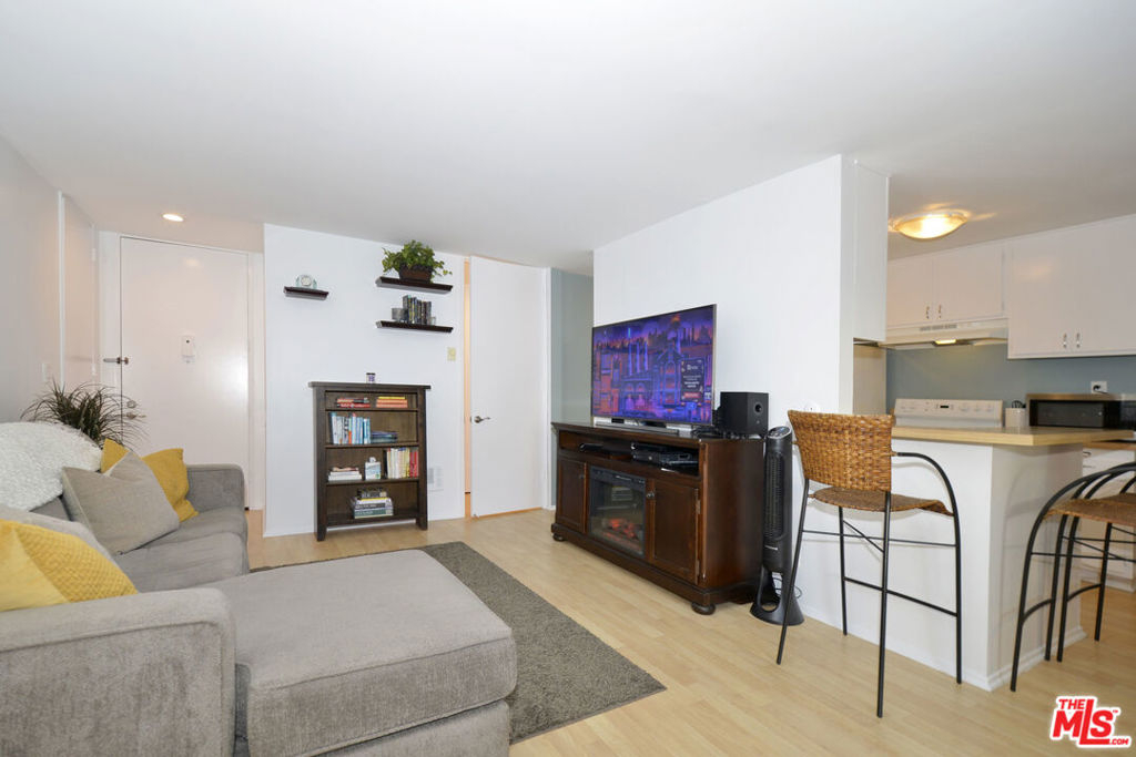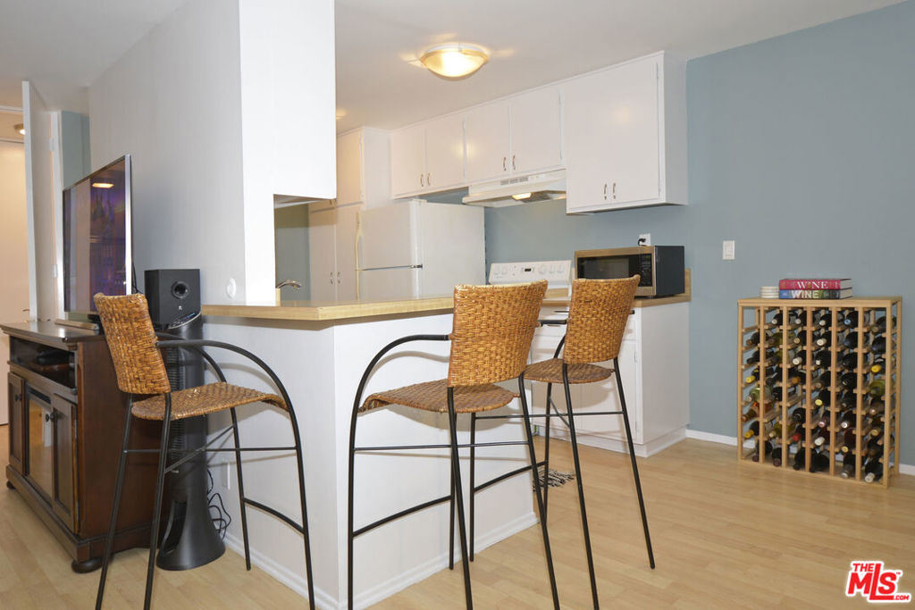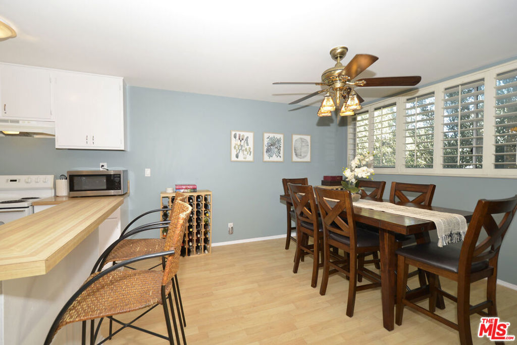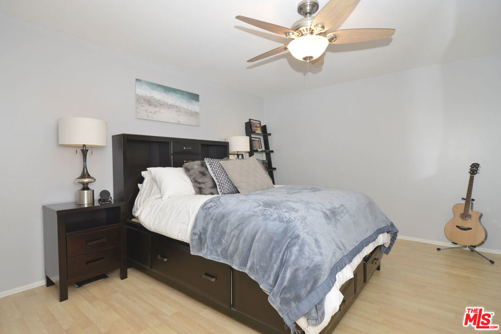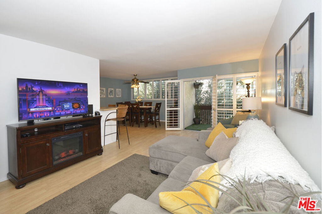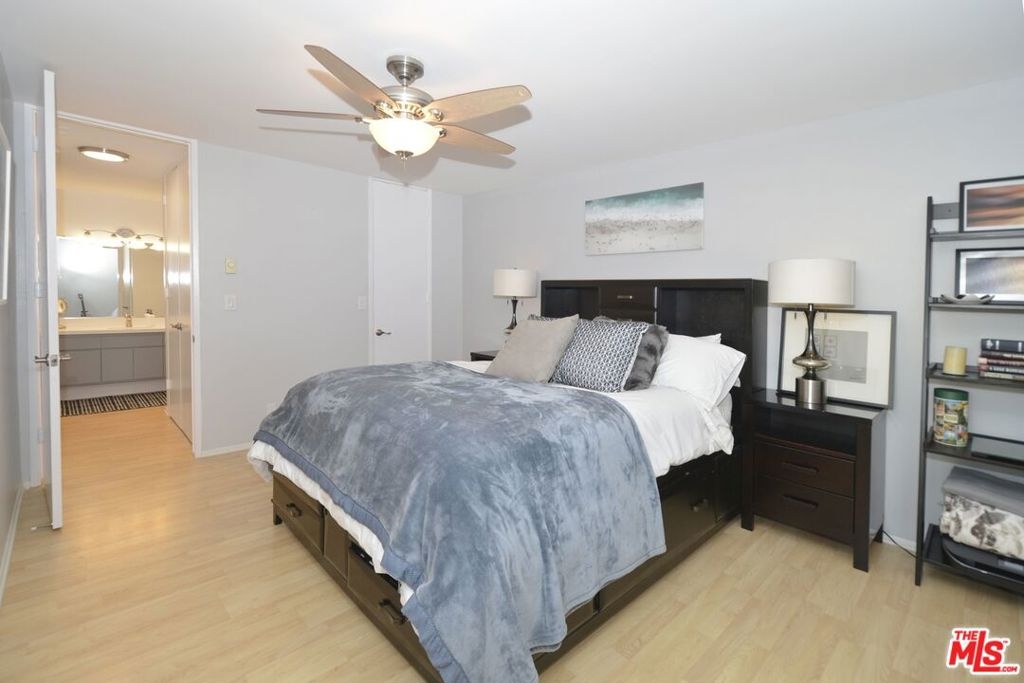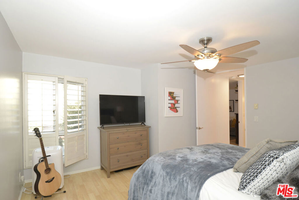 This wonderful upper-floor unit on a lush tree-lined street is sure to please. Upon entry take in the crisp and vibrant living space highlighted with wood laminate flooring, smooth ceilings, and dual pane windows outfitted with elegant plantation shutters. Prepare your favorite dishes in the fully-equipped galley-style kitchen affording abundant cabinets and storage, breakfast counter, and serene views of the beautiful olive tree outside the windows. Enjoy a private and comfortable master suite with a walk-in closet, elegant new quartz vanity, and tiled bathroom. Additional features include ceiling fans, easy access to the elevator and laundry room, and gated subterranean SxS parking (spaces 247 & 248). Complex amenities include controlled access, inviting outdoor pool, gym, saunas, clubhouse with game room and on-site staff, and mature landscaping. Ideal location near 10-acre Fox Hills Park, numerous retail and dining establishments, and easy access to popular westside destinations.