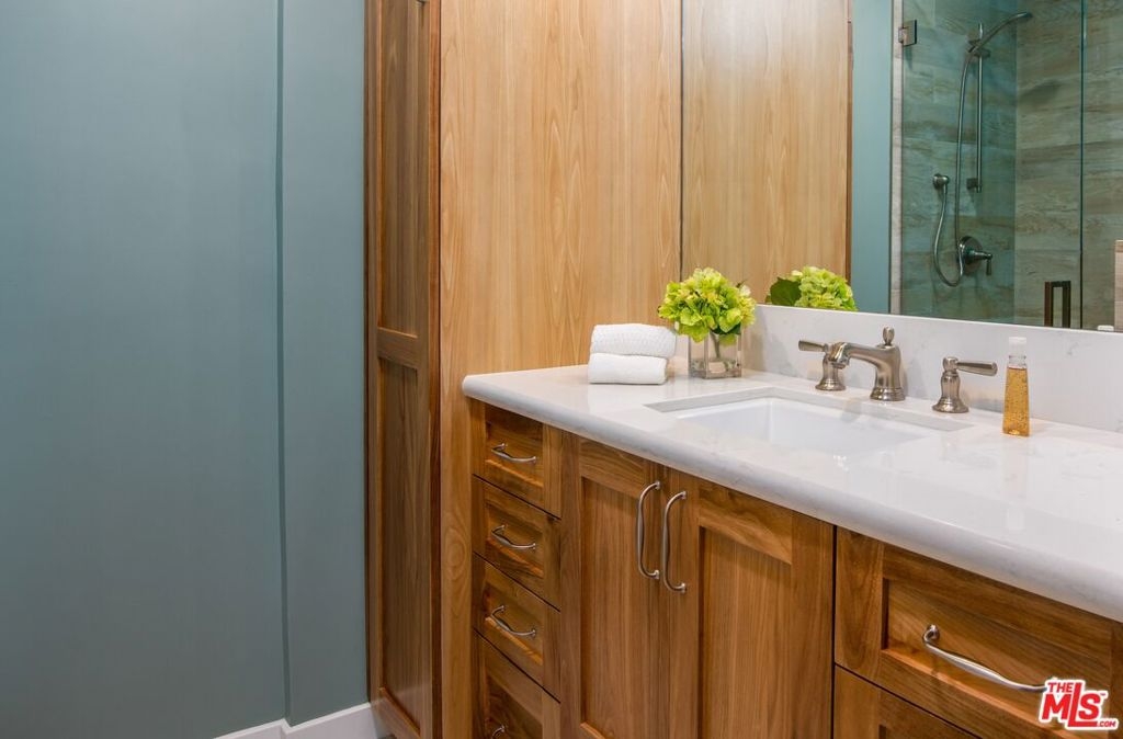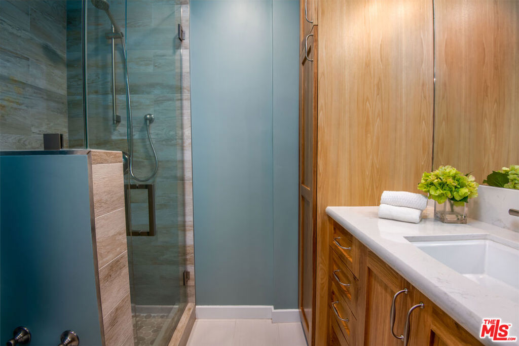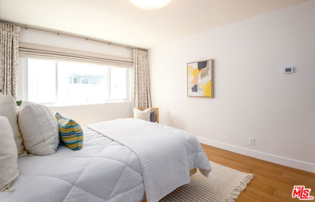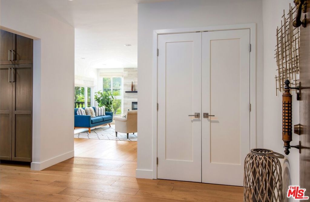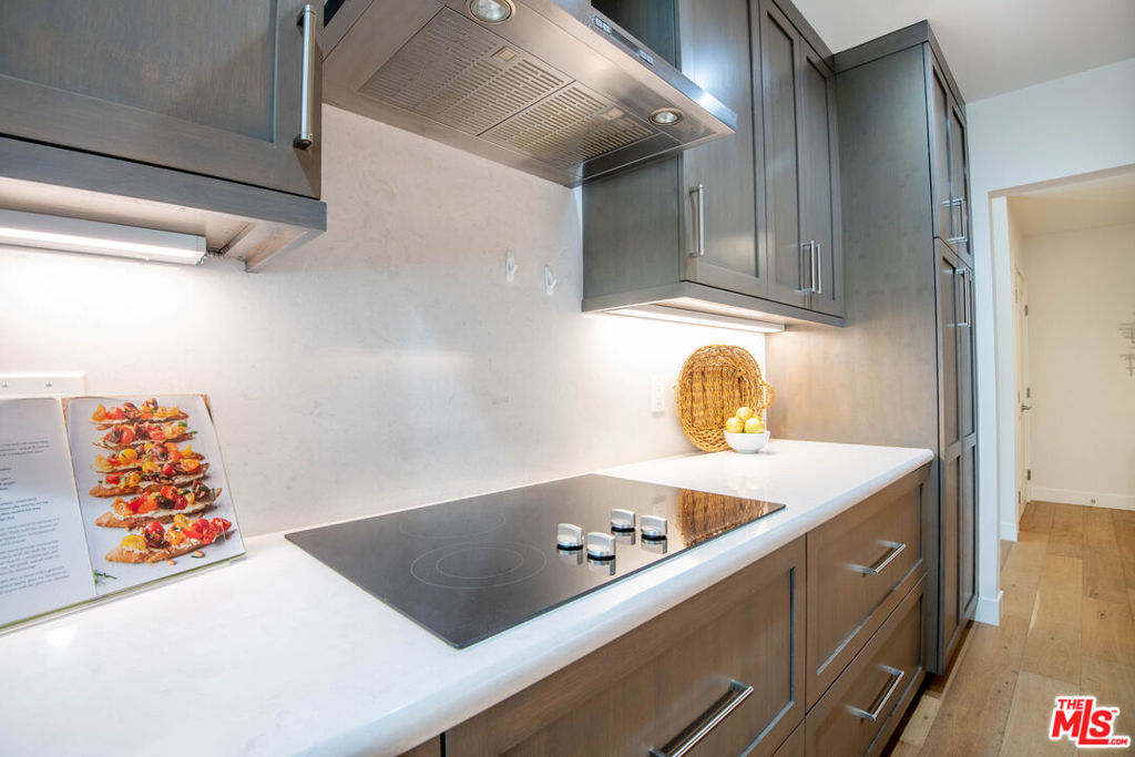 Enjoy upscale living in this exquisitely remodeled corner end unit with incredible flow and pleasant views of the park located across the street. Step into the formal entry and admire the open and airy sunken living room with contemporary farmhouse-style heated floors, decorous fireplace, and elegant clean lines. The gourmet kitchen is sure to impress with custom pecan-stained cabinets, Cambria quartz countertops and backsplash, and high-end stainless appliances including Thermador dual convection ovens. The adjoining dining area opens to the living room and balcony...perfect for entertaining guests. The bedrooms are roomy and comfortable with the primary suite boasting a walk-in closet and both bathrooms have been fully-customized with walnut vanities, quartz countertops, and on-trend fixtures and lighting. Additional highlights include recessed lighting, dual pane windows with custom treatments, upgraded electrical panel, WiFi-enabled thermostats, and SxS parking near the elevator.