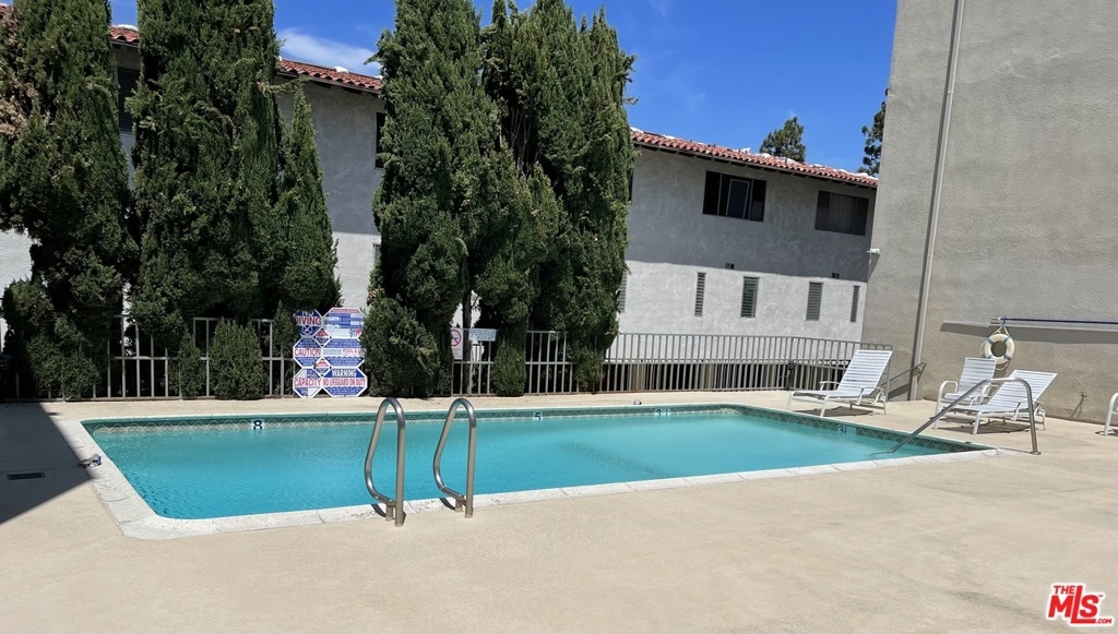 Pride of Ownership! Newer kitchen with maple colored cabinets, granite counters, brand new range. Even a "serving window" that slides open from the kitchen for the host/hostess to graciously entertain guests in the private oversized patio! Bathroom is modern looking with a spa tub and newer sink area and lots of storage. Bedroom is quite large, has an oversized window for ventilation, a mirrored closet door with the interior being professionally organized for all shapes and sizes. Bamboo flooring, mirrored dining area. The best part is that the spacious patio has a private gate that leads out to the sparkling blue swimming pool/lounging area. Entertain on your patio, open the gate and Voila! Jump right in! A real California lifestyle! Laundry is community but convenient, clean, spacious and has newer machines. Parking is probably the best in the building! Right next to the elevator! The main lobby is sleek, upscale and inviting. Complex is on a short quiet street and is well taken care of. There is a brand new roof. HOA dues are generally $325 but until December 2021 they are $480 to pay for the roof. Being sold As-Is. Probate but no court confirmation is required.