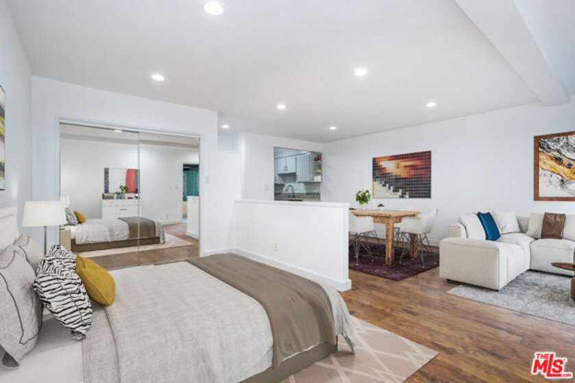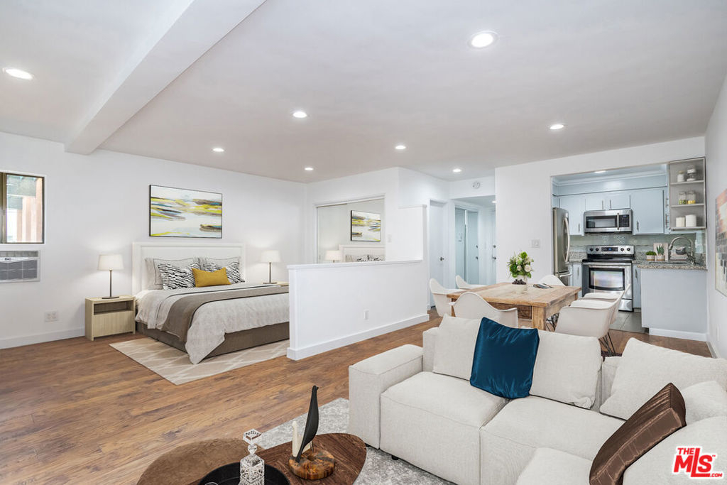 Large, bright, turn-key studio in the heart of Culver City! This lovely condo features beautiful engineered hardwood floors, recessed lighting, an updated bathroom with shower / tub combo, and tastefully remodeled kitchen with new refrigerator and all stainless steel appliances. The space is highly efficient with large dining / living room area, which flows out to a private patio, perfectly suited for outdoor dining, lounging and entertaining. The bedroom space is also quite spacious and is defined by a half wall, separating it from the living space. Community laundry facilities, a sunny pool, spa and a single parking space in the secured, gated garage round out the amenities. This quaint neighborhood is an exceptional location, offering endless nearby amenities, shopping & dining destinations, Westfield Culver City (Fox Hills Mall), parks, schools & access to nearby freeways and LAX. The total package, priced to sell and among the lowest priced condos in Culver City. Welcome home!