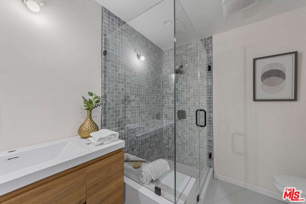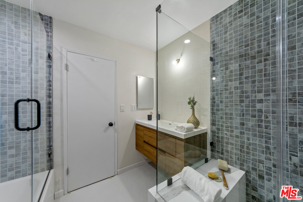 Welcome to this ultra-chic Culver City condo located in Fox Hills. With blond engineered wood floors throughout, smooth ceilings and recessed lighting. Stunning Calcutta quartz kitchen counter tops, new shaker cabinets and stainless-steel appliances boast high grade counter depth refrigerator & slide in gas stove. Designer glass backsplash tiles and charcoal-colored fixtures open to naturally lit dining area and living room. Master suite offers stunning bathroom which is newly tiled with seamless shower and separate soaking tub plus additional additional separate shower. Both bathrooms boast freestanding vanities, new fixtures, mirrors and energy efficient toilets. Complex offers sundeck, rec room, BBQ grills, sparkling pool, jacuzzi & 2 side to side parking spaces (#16/#17). Conveniently located near proximity to Westfield mall, parks, walking/jogging trail. Award winning Culver City Schools and minutes from the Platform, Ivy Station, Playa Vista, Downtown Culver City restaurants/shops, Trader Joes, freeways & so much more! Complex is VA approved.