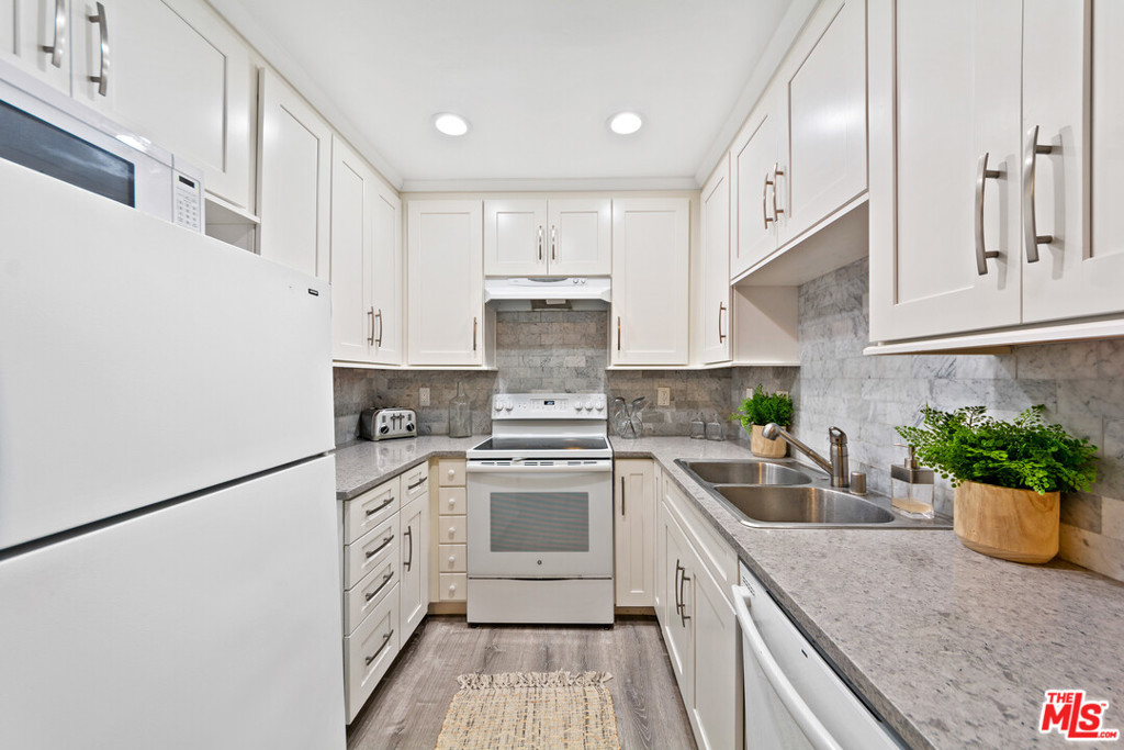Extensively renovated spacious corner unit with TWO office nooks. Enjoy the bright, airy & open floor plan with a west facing oversized balcony offering expansive tree top and city views. Featuring engineered wood flooring throughout, smooth ceilings & recessed lighting, recently painted, all new dual pane windows, double sliders & chrome fixtures. Renovated kitchen boasts quartz counter tops & backsplash plus new custom cabinets. An abundance of storage space including hallway walk-in closet. Double doors lead to the Master bedroom with upgraded en suite bathroom with quartz tops, acrylic tile style tub and separate shower. Small and quaint complex with a sparkling pool and side to side assigned parking. Enjoy the Culver City schools & services. Conveniently located near proximity to Westfield mall, parks, walking/jogging trail. Award winning Culver City Schools and minutes from the Platform, Ivy Station, Playa Vista, Downtown Culver City restaurants/shops, Trader Joes, freeways & so much more! Welcome Home!