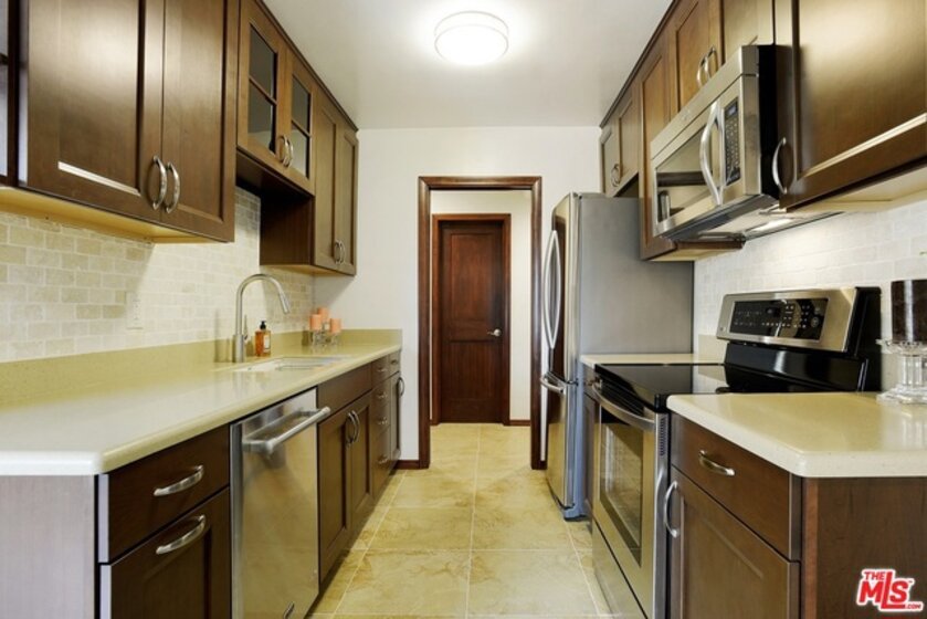 Top floor, 1 bedroom with 1.5 baths, spacious & bright, completely remodeled Condo is located in the highly desirable Windsor Castle. Upgrades include engineered laminate wood floors, new baseboards, and recessed lighting. Kitchen counters are LG HI-MACS 'Annato Granite' solid surface and all kitchen appliances are brand new, Master bathroom shower has Hansgrohe showerhead & adjustable hand shower, heated floor, new bathtub - extra deep; with Hansgrohe fixtures. An abundance of natural light throughout the Condo. One parking space in the subterranean garage. The Windsor Castle is located near many amenities, such as restaurants, theater and shopping and the great Culver City School District.