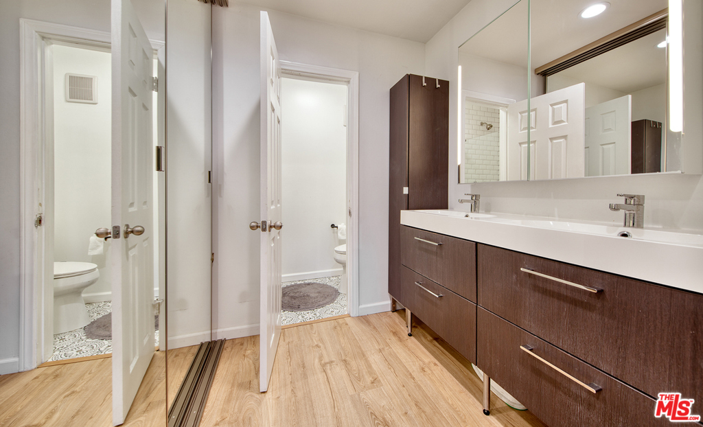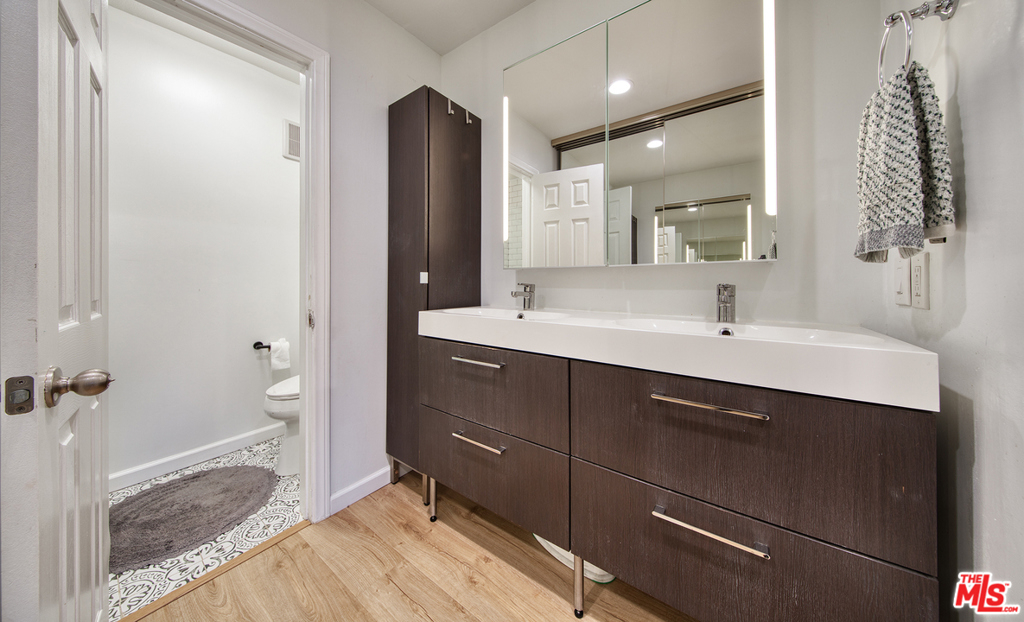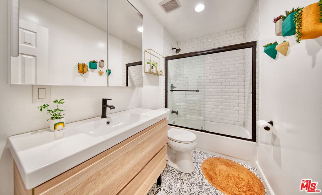 Fully remodeled unit in ideally located Windsor Fountains HOA w/open floorplan. Upgraded kitchen boasts Caesarstone counter tops, shaker style wood cabinetry, stainless steel appliances, double sinks, high-end designer fixtures. Breakfast counter looks out onto dining area & spacious living room w/double glass door accessing the patio. Spacious primary bedroom w/two closets & ensuite bathroom featuring walk in shower, double vanities & exquisite style. Second bedroom & hall bathroom also completely redone w/high-end black matte fixtures. Unit boasts upgraded windows & doors, wide plank wood floors, upgraded electric panel & recessed lighting, new baseboards, & freshly smoothed ceilings & walls. This unit is conveniently located within the complex w/open air entry, near the fountain entrance, BBQs, gazebo, grassy areas, resort style pool, spa, sauna, & tennis courts, as well as two covered parking spaces. This HOA is pet friendly & allows IN UNIT laundry! Love living across the street from Culver City's quaint library, close to shops, restaurants, etc. & just steps away from the La Ballona Creek & Bike Path leading directly to the beach, as well as Farragut Elementary School & Culver City's Middle & High Schools, a quick jaunt to downtown Culver City's restaurants, theaters, & expo line to the east PLUS Playa Vista, Marina del Rey + beaches to the west