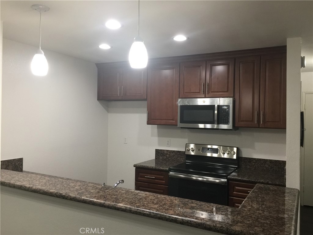 Welcome to your new home with a beautiful view in the cozy Windsor Fountains Condominiums Community. This unit comes with a new kitchen, featuring new cabinets, brown granite kitchen tops, and gorgeous pendant lights. Also included are almost new stainless steel appliances throughout. The unit has two spacious bed rooms, including a master bedroom with its own attached bathroom. Furthermore, the condominium comes with a spacious balcony leading to an unobstructed garden view. Located in the heart of Culver City, across from the city library and near downtown Culver, this unit is ready to serve as your home.