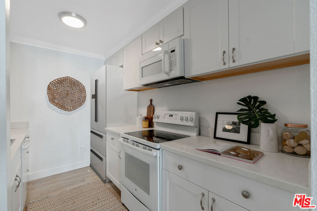 This Culver City condo offers incredible value and an unbeatable location near Culver City's vibrant restaurants, shops, and grocery stores. The 2-bedroom, 1bath home features a beautifully renovated kitchen that opens to the dining area, perfect for entertaining or channeling your inner chef. Enjoy an oversized balcony surrounded by lush greenery, creating a serene indoor-outdoor flow ideal for morning coffee or evening wine. Large living room windows fill the space with natural light, enhancing the warm and inviting atmosphere. The large primary bedroom has a generous walk in closet. Plus Landry in unit! The community offers an array of amenities with a reasonably priced HOA, including swimming pools, spas, tennis courts, and more. You'll never want to leave! New Laundry, Refrigerator and wall AC unit just newly installed!