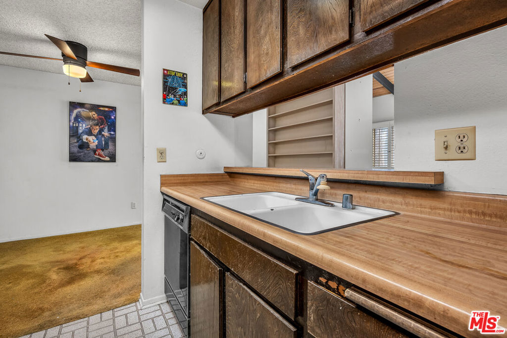 Super cute, great bones, diamond in the rough! Located in Windsor Fountains, in the building farthest from Overland, top floor with vaulted ceiling and fireplace in living room that faces west. Extra space off the living room for an office. Balcony can be accessed by the living room or bedroom. Separate dining area off the kitchen, with built in bookshelves near the entry. Large primary bedroom with built in book shelves and large walk-in closet. Bigger than other first floor 1 bedroom units. Full of light, space and quiet. Bring your ideas because this unit needs all cosmetic updates. It's a really special place. The resort-style Windsor Fountains community boasts an array of amenities, including a large heated pool, spa, tennis courts, clubhouse with kitchen and recreation room, sauna, gazebo, BBQ areas, and an on-site manager for your convenience. This central Culver City location puts you in prime proximity to shops, restaurants, Marina del Rey, beaches, the Culver City Arts District, and award-winning schools. Whether walking, biking, or riding, you'll find everything you need just moments away. Additional features include two gated, tandem parking spaces. HOA dues cover all utilities except electricity, Wi-Fi and cable. This condo is waiting for your vision and personal touch to create the home of your dreams. Contact us today to schedule a showing and experience the best of Culver City living!