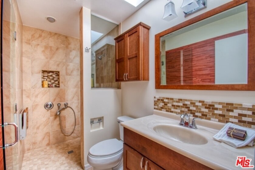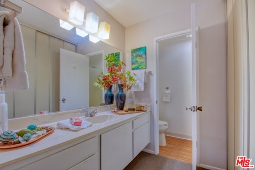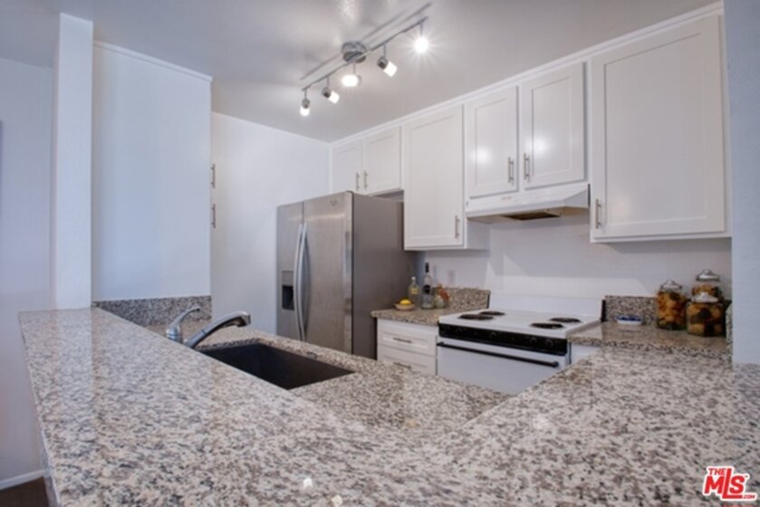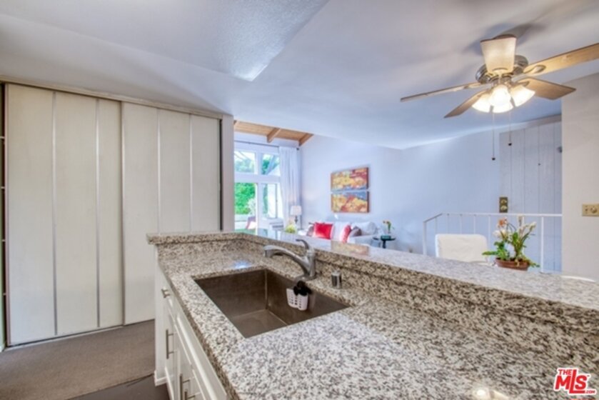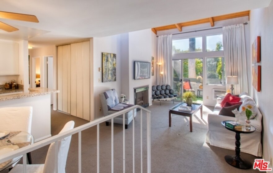 Prime Culver City Location in a Resort-Like Complex. Bright Top floor condo with lots of windows and skylights. Vaulted wood beam ceilings in this front west facing unit. Well laid out floor plan with Fireplace in living area and a good sized private patio. Dining area with breakfast bar, redone kitchen with granite counter tops and good cupboard space. New Refrigerator and new washer & dryer , beautifully redone hall bathroom, master suite with sitting/office area, security 2 car parking. This is located in a beautifully manicured park like setting w/ gardens and streams. Close to the Library and Farragut School. The Windsor Fountains Condominiums is a 6 acre + gated community w/ solar heated pool, spa, sauna tennis courts, clubhouse , gar barbecue and picnic area.