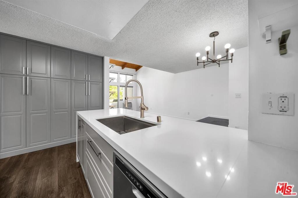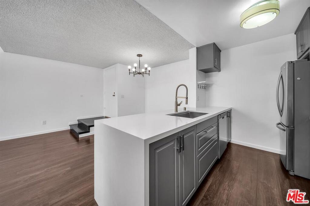 Top floor 2 bedroom with 2 bathroom remodeled condo located at popular Windsor Fountain. Exceptionally bright unit with vaulted ceilings faces tranquil interior of complex. The open floor plan surrounds the Kitchen, dining area and living room which also includes a gas fireplace. Beautiful remodel includes kitchen with quartz counters and stainless steel appliances, bathroom with double vanity, engineered wood floors, new paint throughout unit and new carpet in bedrooms. Most sought-out WASHER AND DRYER are located inside hallway closet. Unit faces pool and lush landscaped grounds. Complex has it all: On-site manager, Pool, spa, rec-room and gazebo with BBQ area. Close proximity to downtown Culver City. Culver City school district. A Must see!
