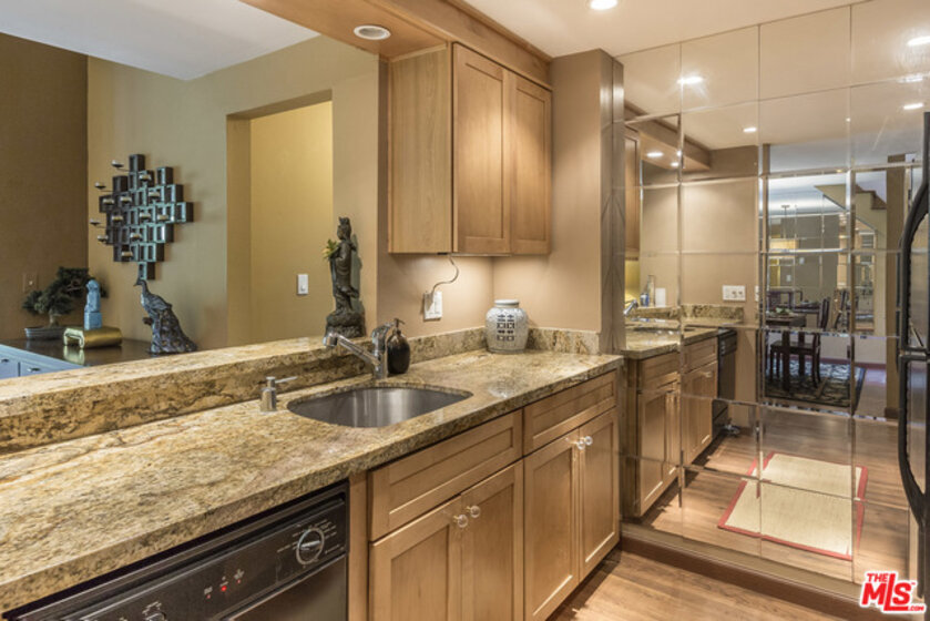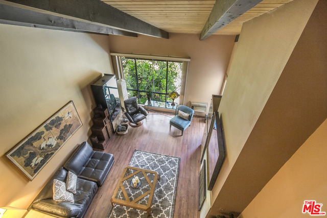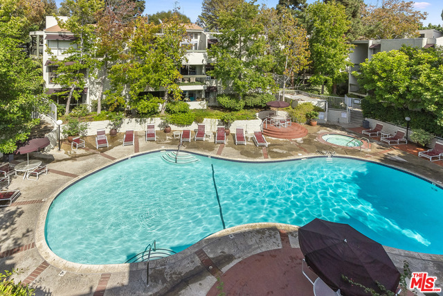 Rare find - 1 bedroom+1 bath+Loft unit with unobstructed views of the pool. This unit sits on the top floor, with views of trees and the pool from all windows and from your private balcony. Clerestory window. High ceilings The open loft has a closet and beautiful decorative wood siding on the exterior and interior of the loft half wall. Kitchen totally remodeled with granite counters, shaker cabinets, farmers stainless steel sink, built-in combo microwave and convection oven, dishwasher and stainless steel refrigerator. Under counter lighting. High quality plantation shutters throughout. Pergo floors. Fireplace surround has been newly tiled in LR. Newly painted. Casablanca ceiling fan. Bathroom with skylight has been totally remodeled. Common walls are the bedroom and bathroom of the adjoining unit which is also listed for sale by the same agent. Two tandem underground parking spaces. Fantastic location directly above the recreation room and steps from the elevator.