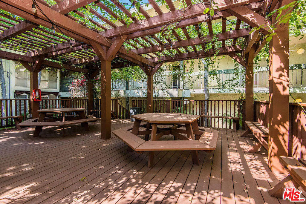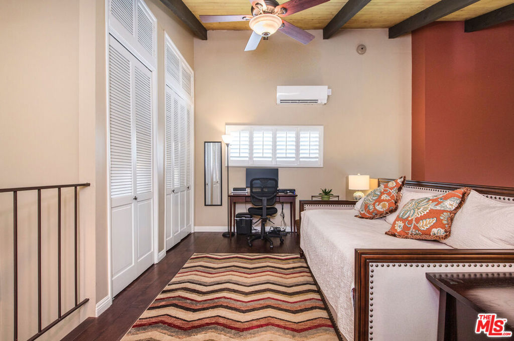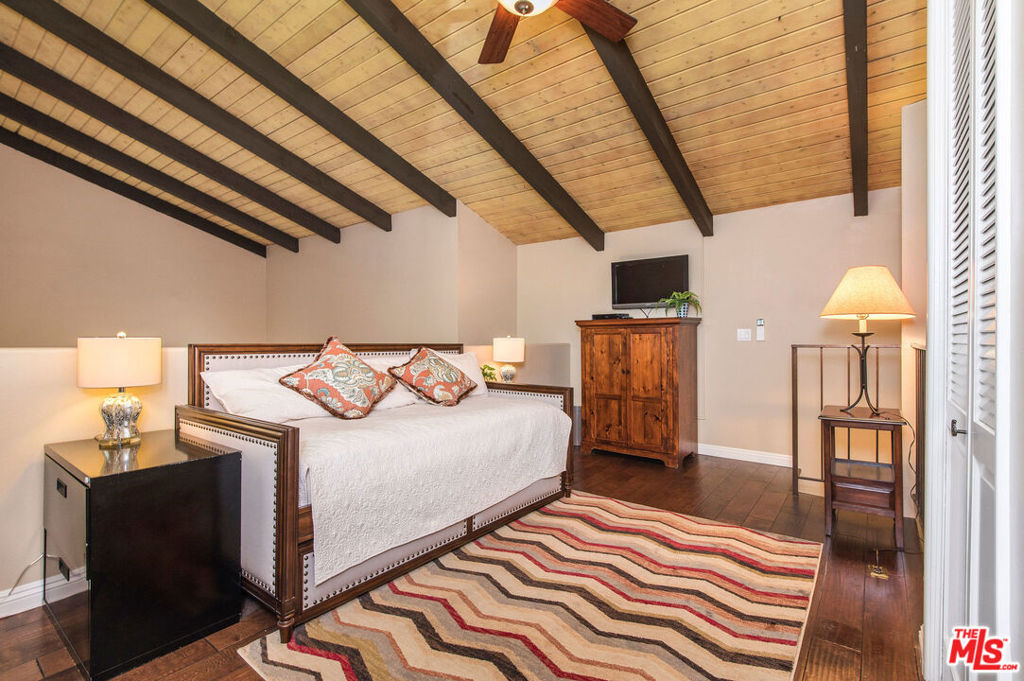 Stunning updated top floor condo centrally located in heart of Culver City! This beautiful 2 bedroom/1 bathroom condo offers a spacious 985 square feet of living with an open layout and breathtaking high vaulted ceilings. Upgrades include but not limited to hardwood floors throughout, molding and baseboards, fully remodeled bathroom w/ restoration hardware vanity, new deck with Spanish tile, custom shutters, upgraded electrical panel & AC . Kitchen equipped with Caesarstone countertops, custom backsplash, new sink, Hansgrohe faucet & recessed lighting. Master bedroom complete w/ new lighting fixture, California custom Closet & custom black out curtains. Washer/dryer allowed to be installed w/ HOA approval. Close to elevator! 2 car tandem parking. Adjacent to the Ballona Creek Bike path this complex has multiple tennis courts, pool, spa, sauna, clubhouse, recreation room & lush grounds. On-site Mgr. Close proximity to downtown Culver City and Culver City School District.