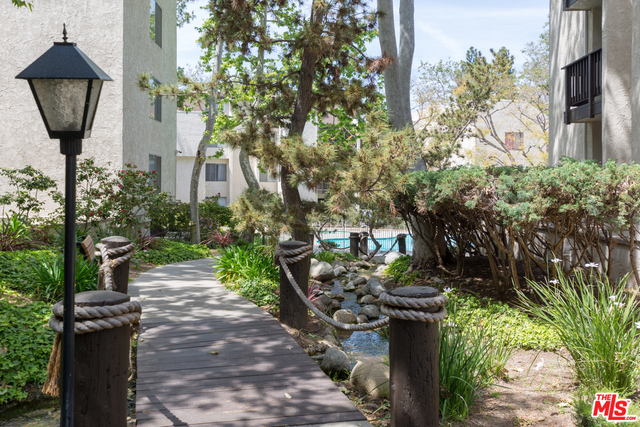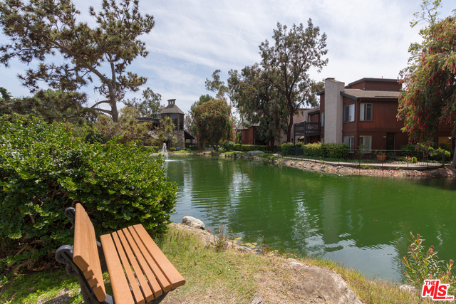 Lovely second floor corner unit w/fabulous views of a babbling brook & luscious greenery. This 2 bedroom 2 bath condo has an open floor plan w/plenty of natural light featuring shared living/dining area leading to the balcony, new engineered wood floors throughout, an abundance of storage space, Central A/C & Heat & Stainless Steel appliances. Remodeled bathrooms w/chic tiles in shower & new vanities w/modern accents. Master bedroom offers a generous sized walk-in closet & private bathroom. This unit comes w/tandem parking spaces (43/44) & extra storage. Lakeside Village Community is a resort like complex & includes 3 pools, 2 hot tubs, sauna, clubhouse, workout facility, guest parking, indoor laundry room on each floor, 24-hr gated security & let's not forget the charming lake with ducks, geese & turtles. HOA dues include water, gas, trash, basic cable, common area landscaping, building maintenance & 24 hour guard gated entrance. Award winning Culver City/Farragut School District.