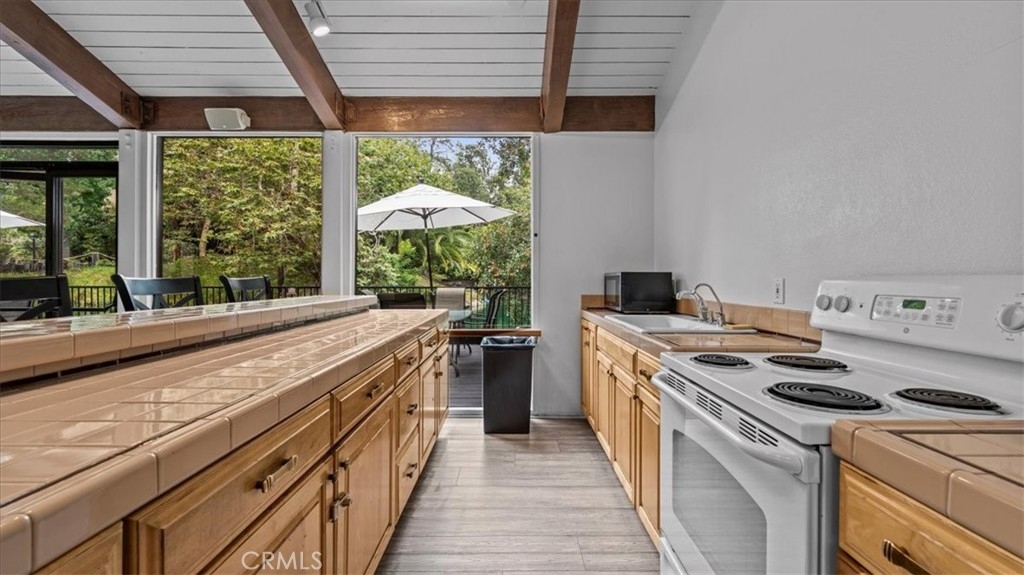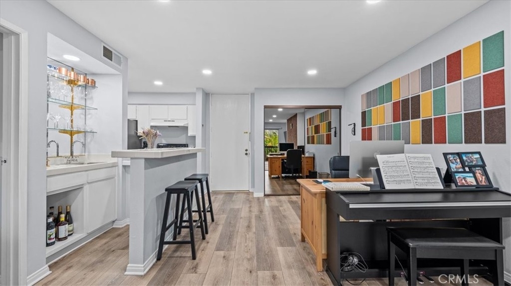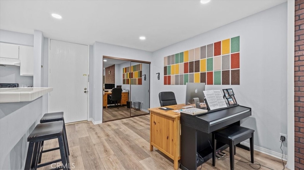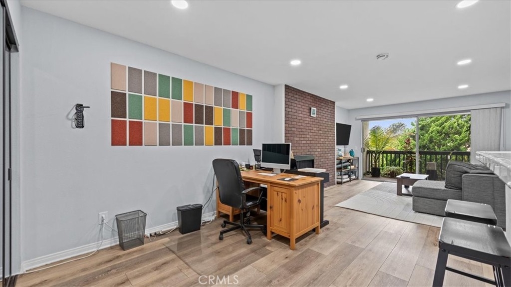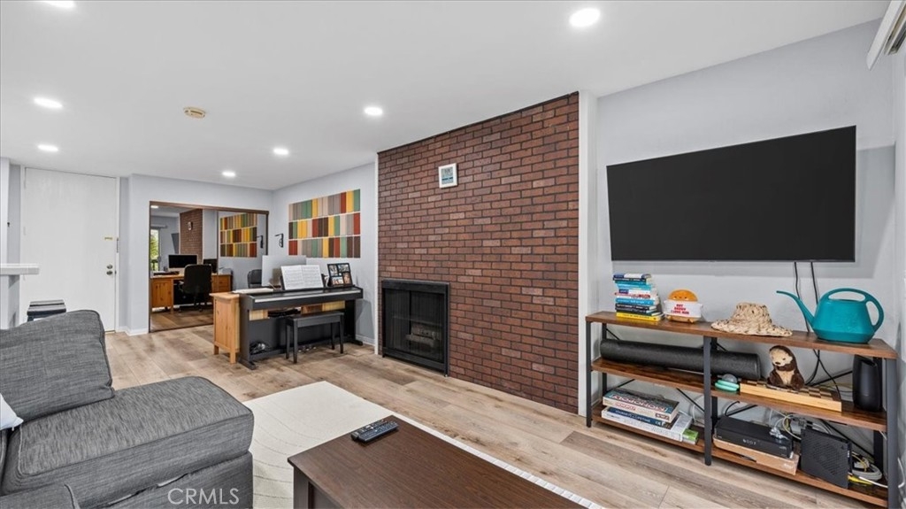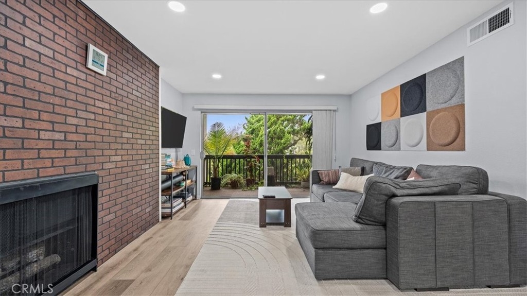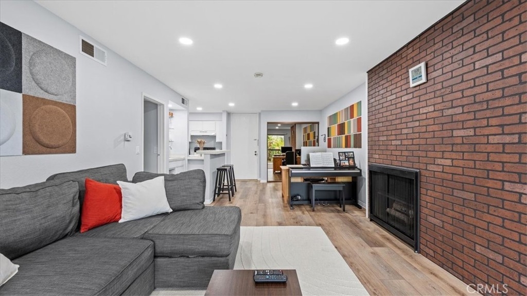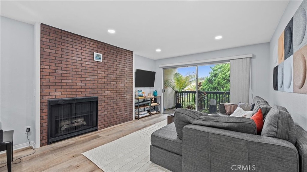 Welcome to this beautifully updated top-floor 1 bed, 1 bath condo in the desirable Raintree community of Culver City. This light and airy 740 sq ft unit features stylish wood-style laminate flooring throughout, a cozy fireplace, and an open-concept living/dining area with treetop views. The spacious balcony offers a peaceful retreat, perfect for morning coffee or evening relaxation. The kitchen includes ample cabinet space and a convenient adjacent wet bar for entertaining. The generously sized bedroom features dual closets and easy access to the full bath. Located in a guard-gated complex, Raintree offers resort-style amenities including a large, heated pool, spa, fully equipped fitness center, volleyball court, clubhouse, library, and scenic walking trails across 6+ acres of park-like grounds. This unit includes two tandem parking spaces in a secured garage, plus elevator access directly to the top floor. Centrally located near downtown Culver City, studios, Baldwin Hills Scenic Overlook, and top-rated schools. HOA dues cover internet, water, gas, trash, security, and exterior maintenance. Don't miss this rare opportunity to own in one of Culver City's most sought-after communities!