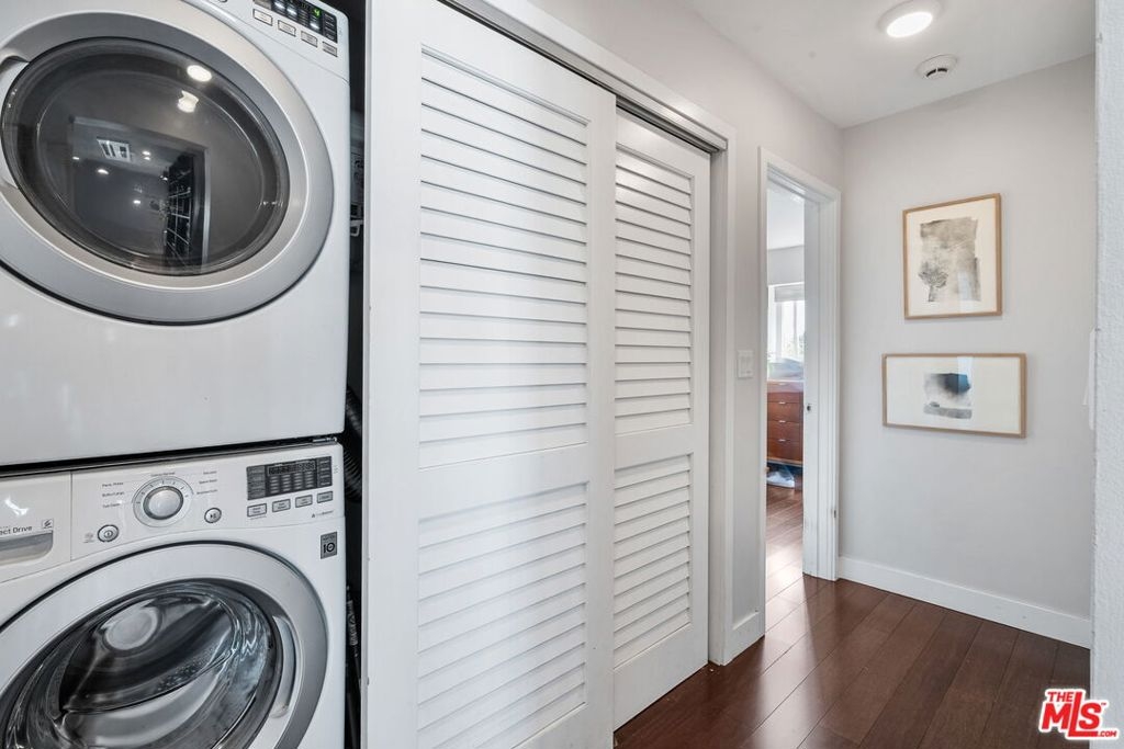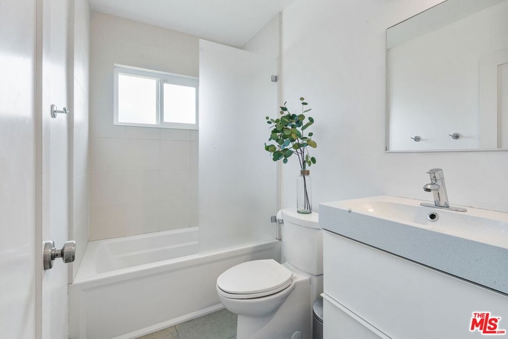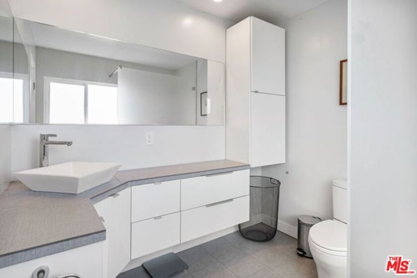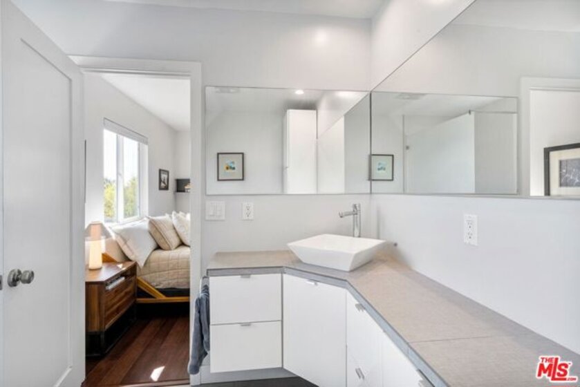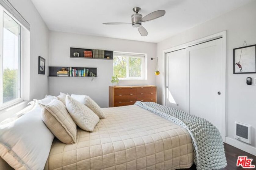 This updated, front-facing top floor unit is located in one of Culver City's most sought after neighborhoods. With standout curb appeal, this character-rich building combines a brick facade, clean board-and-batten gables, beautiful overhangs, and deep eaves. Entry opens to an airy living room with recessed lighting, engineered wood floors, and expansive sliding glass doors that open to a covered balcony with treetop views. The large, front-facing chef's kitchen features: sleek flat-panel cabinetry, open stainless shelving, granite countertops, stainless LG appliances, and a generous butcher-block center island with ample seating. The primary suite is a calm, light-filled retreat with modern ceiling fan, wide-plank floors, and large closet space. En suite spa-like primary bathroom features: modern floating vanity, gray countertops, vessel sink, mirrored walls, light gray large format tile floors, and a walk-in shower with privacy frosted glass. Two additional bedrooms each include: wide-plank floors, large windows, ceiling fans, and ample closet space. The hallway bath echoes the home's clean, contemporary palette with a modern floating vanity, large format light gray floor tile, and a tub/shower finished with full-height tile walls. Large hallway closet includes stackable LG front-load washer & dryer and Rheem water heater installed in 2024. Dual-pane windows throughout and upgraded electrical panel. Parking and storage is provided in covered carport. Minutes to downtown Culver City, Sony Pictures Studios, Helms Bakery and the Platform. Easy access to the 10 and 405. THIS IS A MUST SEE!