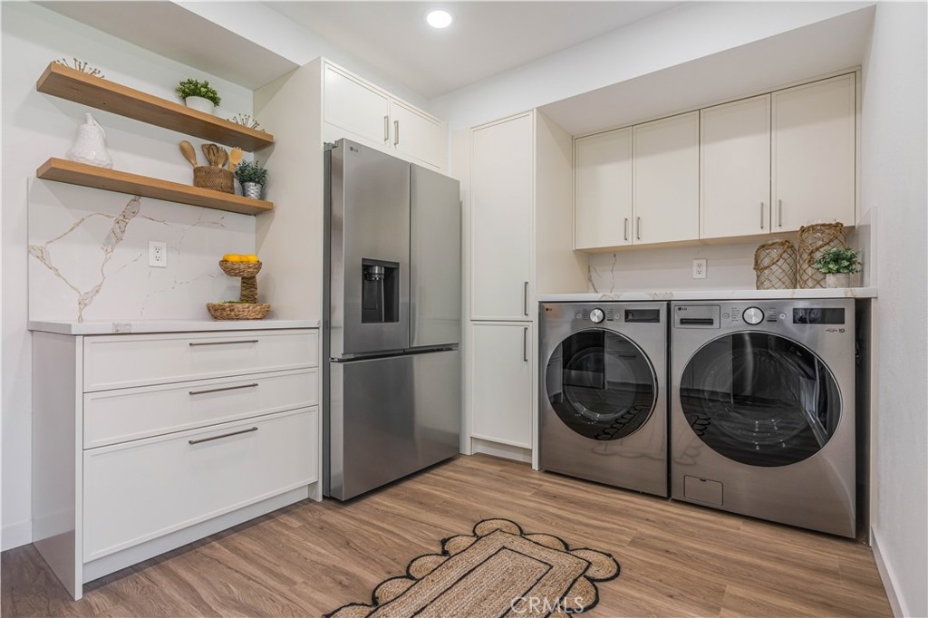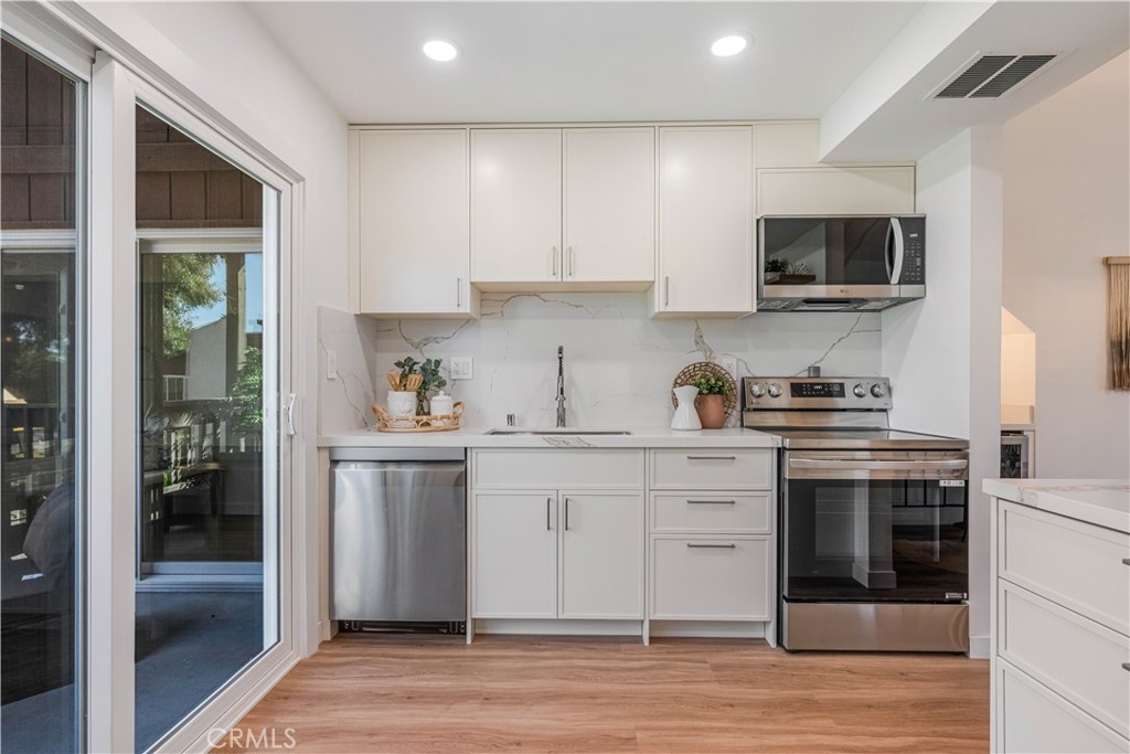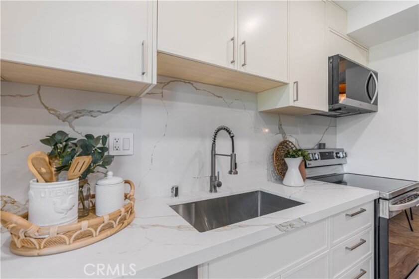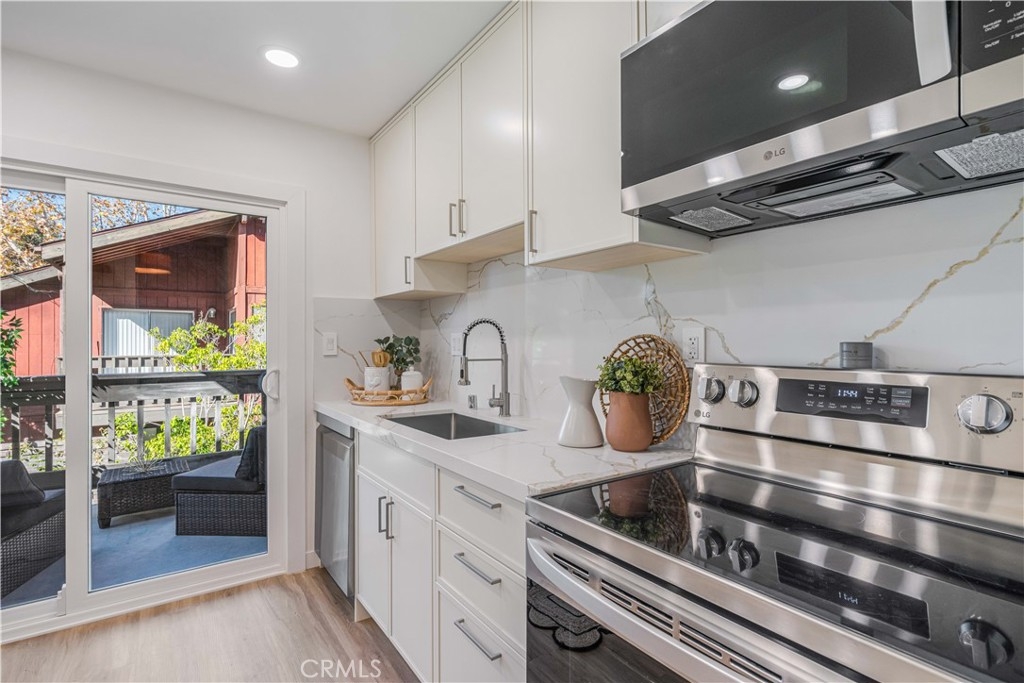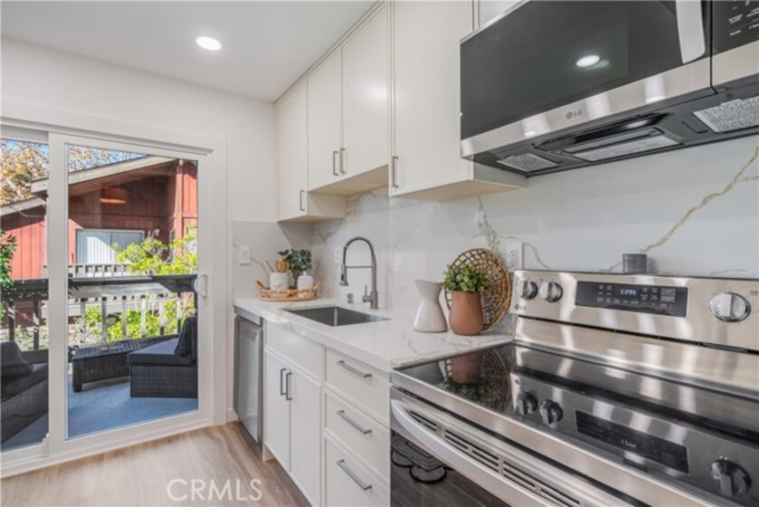 Set within the highly regarded, guard-gated Lakeside Villas community in Culver City, this multi-level condominium has been thoughtfully reimagined from top to bottom. Clean, modern design meets everyday livability in a setting surrounded by tranquil water features, walking paths, and mature landscaping. The result is a peaceful retreat just minutes from the heart of the Westside. The home offers two bedrooms plus a spacious loft, ideal for a home office, creative studio, or guest space. Two fully remodeled bathrooms featuring curated finishes throughout. The redesigned kitchen anchors the main living area and includes custom cabinetry, quartz countertops, and a full suite of brand-new GE appliances with an induction range and in-unit laundry. A custom coffee bar with a wine refrigerator adds both function and personality. New flooring, recessed lighting, updated fixtures, new interior and closet doors, a restored statement fireplace, updated plumbing and all-new dual-pane windows and sliding doors enhance the home throughout. Additional highlights include a double-door main entry, a large walk-in closet in the loft, and two large private balconies. Quietly positioned away from the street, this tri-level condominium offers only one shared wall, no neighbors above, side-by-side parking, and two storage units. Enjoy access to pools, spas, a fitness center, clubhouse, and private lake within a 24-hour guarded community minutes from Downtown Culver City, Playa Vista, and Marina del Rey, and within the highly regarded Culver City Unified School District.
