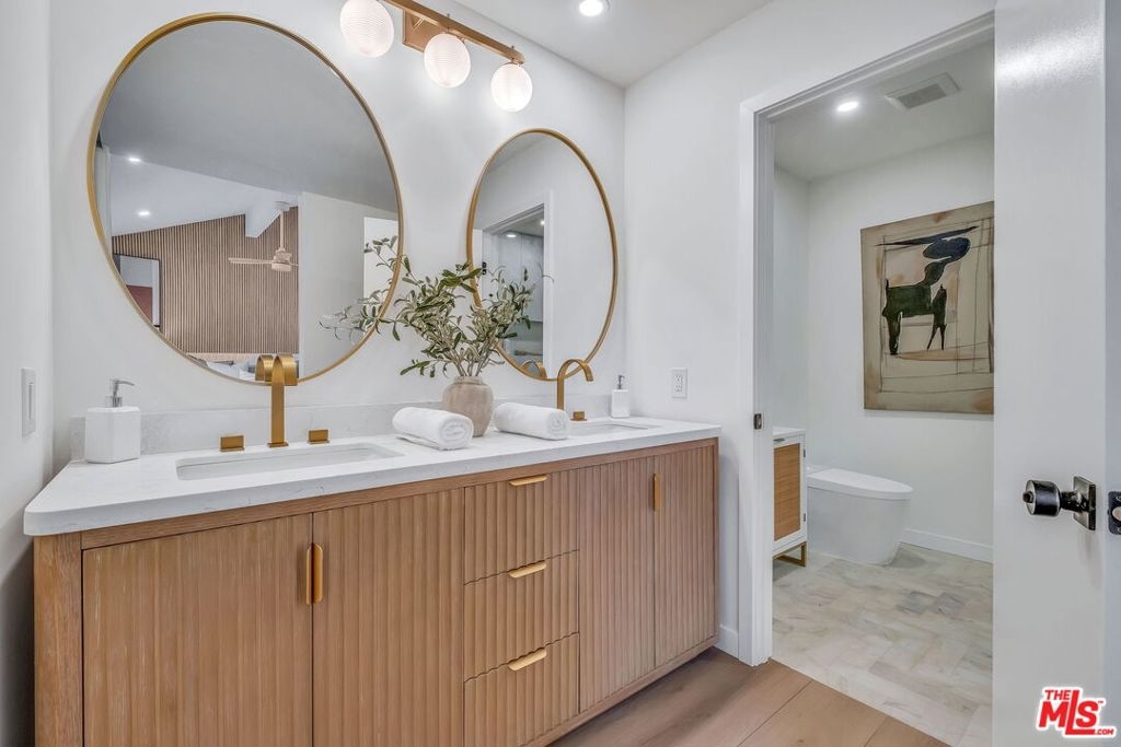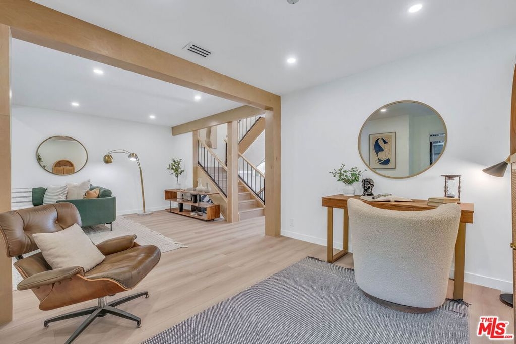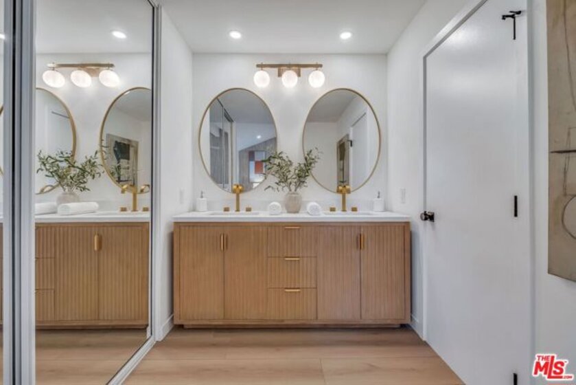 Pristine renovation in one of Culver City's most desirable communities. Raintree Townhomes is a gated, guard-attended enclave known for its private lake, lush landscaping, and tranquil walking paths that create a true sense of retreat. This beautifully updated tri-level townhome lives like a single-family residence, offering generous space, privacy, and thoughtful design throughout. The main living area showcases soaring pitched ceilings, new luxury vinyl flooring, and elegant box beam detailing across the first floor. A stunning marbled mantel anchors the space, featuring a sleek modern LED electric fireplace. A dedicated office with a built-in window nook overlooks serene greenery an ideal setting for work or quiet reflection. The newly reimagined kitchen embraces an open-concept design with high-grade custom cabinetry, a spacious center island perfect for entertaining with additional storage, and stylish white Forno Espresso stainless steel appliances accented by elegant antique brass finishes. Enjoy seamless indoor-outdoor living from the spacious balcony off the formal dining room perfect for grilling or dining al fresco. All kitchen and bathroom spaces have been tastefully updated with new vanities, fixtures, finishes, and lighting. The main level also features a formal dining area, the private office with custom cushion seating, and a beautifully renovated bathroom with a newly tiled shower. The lower level offers an expansive flex space with double-door entry, walk-in closet, and en-suite bath ideal for studio-style living, a guest retreat, home office, or creative space. A private two-car garage with direct access and additional storage adds everyday convenience. The top floor presents a bright, light-filled layout with soaring ceilings, three generously sized bedrooms, and two beautifully appointed full bathrooms. Additional upgrades include new dual-pane windows, new water heater and a stackable washer and dryer conveniently located inside the first-floor bathroom. A rare opportunity to own a truly turnkey home in a resort-like community. Residents enjoy beautifully maintained grounds with scenic walking trails, streams, a private lake, tennis courts, pool, clubhouse, and recreation areas with billiards and ping pong. The HOA includes internet and basic cable, earthquake insurance, and maintenance of the common grounds. No rental restrictions, with a minimum lease term of 30 days.