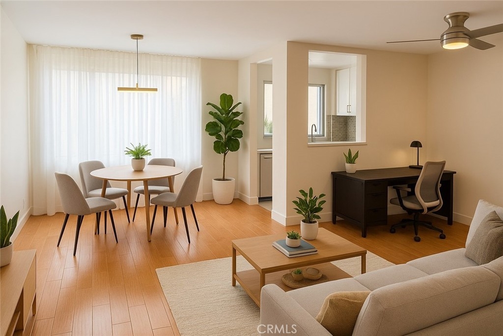 Experience luxury living at an incredible price per square foot! This beautifully renovated 2-bedroom, 2-bath condo with a den combines elegance, comfort, and function, all with low HOA dues. Step through charming French doors into a bright, open-concept layout filled with natural light, smooth ceilings, and engineered hardwood floors. Every detail has been thoughtfully curated with high-end finishes for today’s discerning homeowner. The spacious living room flows seamlessly into a versatile den/breakfast nook, while the dining area doubles as a home office or creative flex space. The chef’s kitchen is a showstopper — featuring custom Shaker cabinets with soft-close drawers, marble and glass mosaic backsplash, and premium quartz countertops with abundant prep space. Each bedroom offers generous proportions and a tranquil retreat. Both bathrooms are fully remodeled spa sanctuaries, showcasing modern tilework, comfort-height vanities, and luxury shower panels with rainfall heads, body jets, and handheld wands. The primary ensuite features a stunning frameless glass shower with four-panel doors. Additional highlights include ample in-unit storage, plus extra storage above two secured garage parking spaces. The community offers a sparkling pool and spa, controlled access, on-site laundry, security cameras, and earthquake insurance. Nestled in the heart of Silicon Beach, just moments from Culver City, Playa Vista, and Westchester, you’ll be surrounded by global innovators Google, YouTube, TikTok, Belkin, Warner Bros, and more. Enjoy proximity to LMU, USC, SOFI Stadium, The Forum, LAX, UCLA, and major freeways (405, 10, 105). Whether you’re a first-time buyer, downsizing, or investing, this stylish condo offers the perfect blend of convenience, luxury, and value. (Home has been virtually staged and is currently vacant. Broker/Agent does not guarantee the accuracy of square footage or other property details. Buyer to verify all information.)