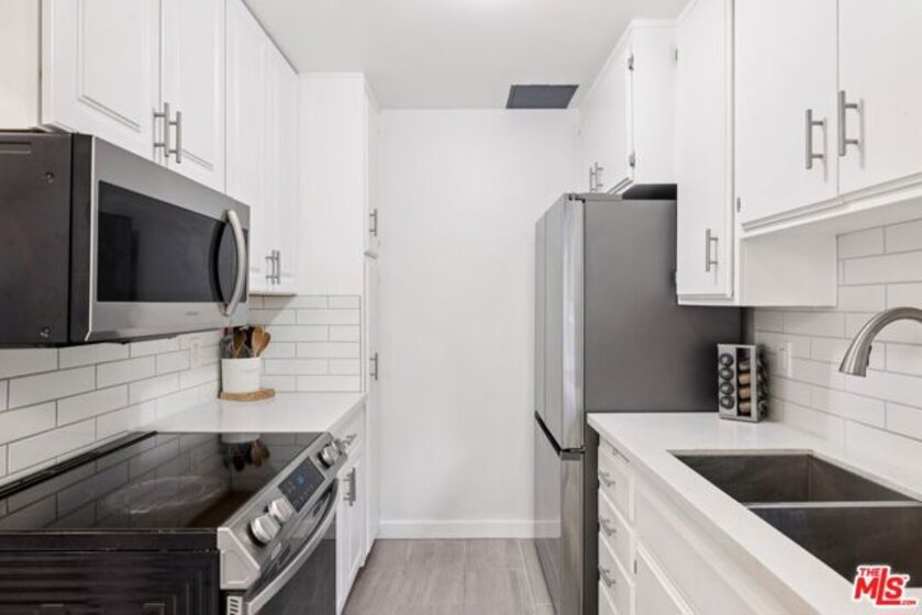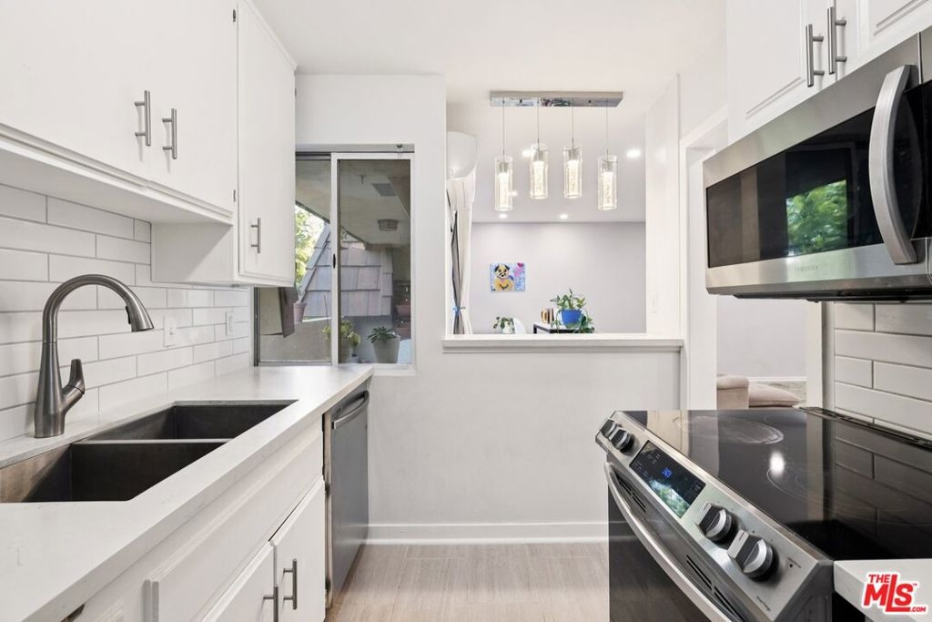 Move right into this beautifully maintained and spacious top floor unit with 850sf of living space. Enjoy the added privacy of no one above you and relax on your private balcony just off the living room with tree top views. This condo has grey tiled floors throughout, recessed lighting and two mini split (heating/air) systems in the bedroom and living room. There are two large closets in the bedroom with additional closet space in the hallway as well. The bathroom has a vanity with quartz counters, and the shower/tub was just reglazed. The kitchen has a brand-new dishwasher, updated appliances, white wood cabinets and quartz countertops. The Sumner House complex offers a welcoming lobby with intercom entry, gated subterranean parking and a relaxing pool area. This unit comes with 1 parking space #47 and additional storage unit in the garage/laundry room. Come live in this ideal location just up the street from Fox Hills Park, Westfield Shopping Mall, Trader Joes and easy access to the 90 freeway. Low HOA's which include your water bill and earthquake insurance.