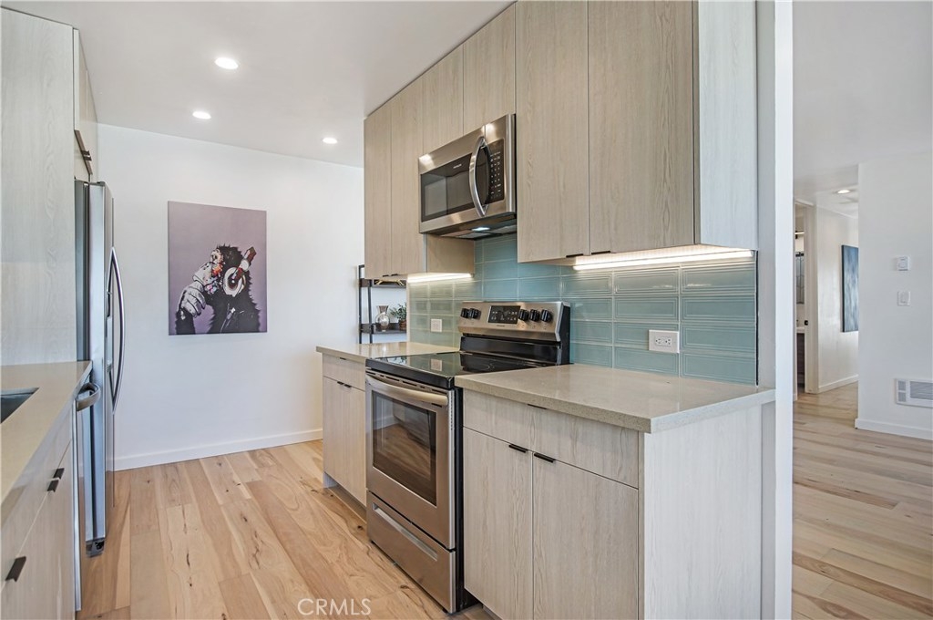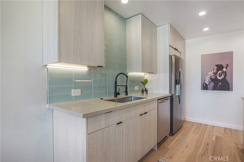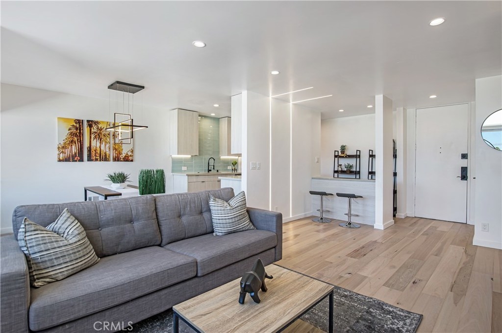 Immaculately Renovated Top-Floor Corner Unit with No Shared Walls in Culver City. Featuring smooth white walls, engineered hardwood flooring, and custom design touches throughout, this unit is one of the largest models in the complex and is upgraded beyond compare. The open-concept great room is spacious and bright, with a living room, dining area, sparkling kitchen with modern cabinetry and stainless steel appliances, LED inlaid lighting, and custom bar area. The massive Master Suite features a private entrance, spacious bathroom with dual vanities and eye-catching tile, and a large walk-in closet. Upgraded beyond compare and priced to sell, this condo is truly a rare offering. Go view and submit your offer today!