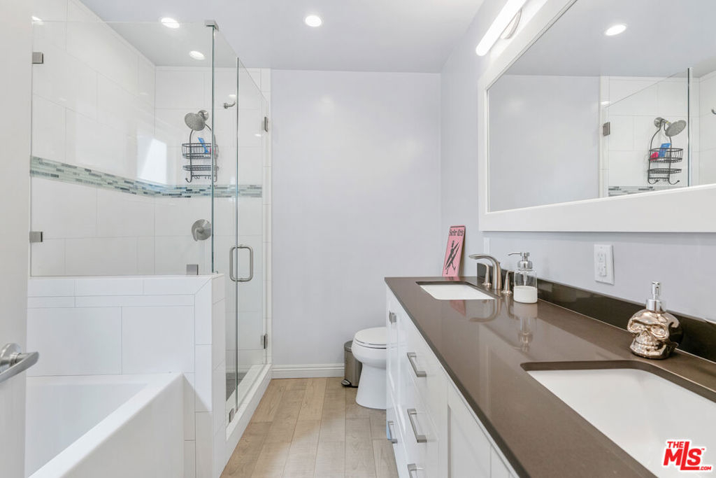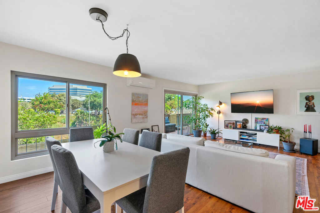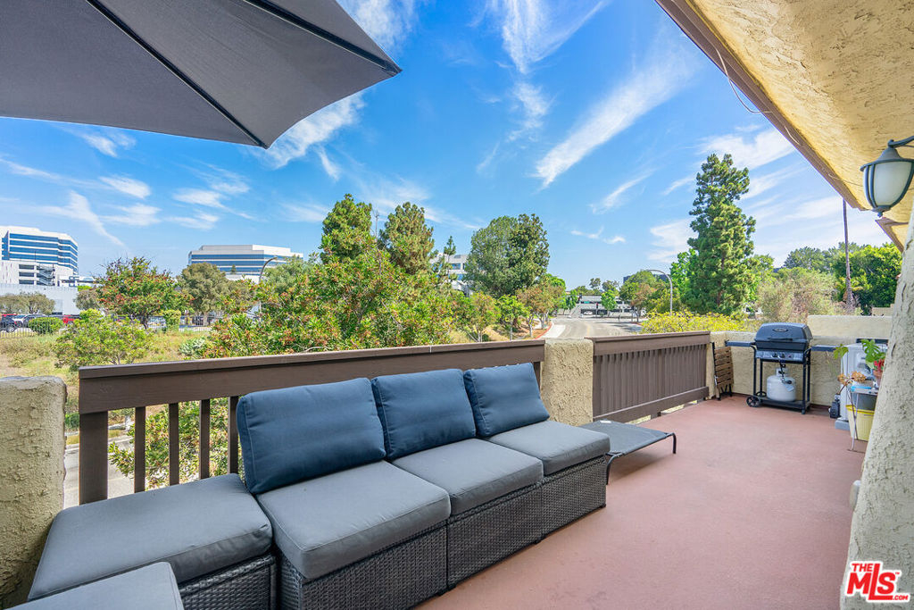 Rare opportunity to purchase this preferred top floor location with amazing oversized patio and lush tree top views from practically every room! Enjoy the wonderful flow of this open floor plan with indoor/outdoor living perfect for entertaining. Relax on your spacious private terrace from this elevated vantage point. Large glass sliders captures the natural light which filters thru the unit. Large bright primary suite with remodeled en-suite bath with dual sink vanity, soaking tub, and glass enclosed shower. The second bedroom has direct patio access and greenery views. Upgraded kitchen with stainless appliances including new refrigerator, w/ separate freezer, new microwave, and newly design laundry area with washer and dryer. Refreshing mini-splits installed to keep your condo cool and enjoyable even on a warm summer day. Finish your day by dunking in the community's pool and spa deck offered by this finely manicured Culver City complex.