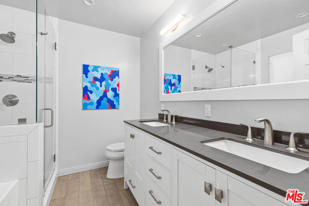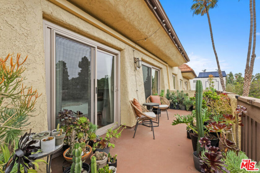 Light filled top-floor units like this don't come around often especially with a patio this spacious and views this open. Set above it all, the home looks out over leafy treetops, giving you a sense of calm and privacy that's hard to find. The elevated location also makes the unit especially quiet, offering a peaceful break from the usual city noise. The layout is open and easy to live in, with a natural flow between the kitchen, living area, and outdoor space great for both everyday living and having people over. Large glass sliders bring in plenty of natural light, making the main living areas feel bright and comfortable. The primary bedroom is generously sized and quiet, with an updated en-suite bathroom featuring dual sinks, a soaking tub, and a separate glass-enclosed shower. The second bedroom offers its own access to the patio along with peaceful greenery views.The kitchen has been upgraded with stainless steel appliances, including a new refrigerator with a separate freezer. There's also a thoughtfully redesigned laundry area with an in-unit washer and dryer for added convenience. Mini-split systems help keep the home cool and comfortable, even on warmer days. Located close to a nearby park, you'll have easy access to outdoor space for walking, relaxing, or just getting some fresh air. The community also features a well-maintained pool and spa an easy, nearby spot to unwind within this Culver City complex. Square footage taken from previous listing. Seller, Broker and Brokers agents do not represent or guarantee the accuracy. HOA dues cover water, trash, gardener, pool/spa.