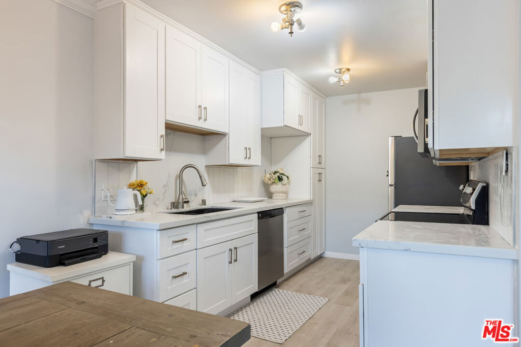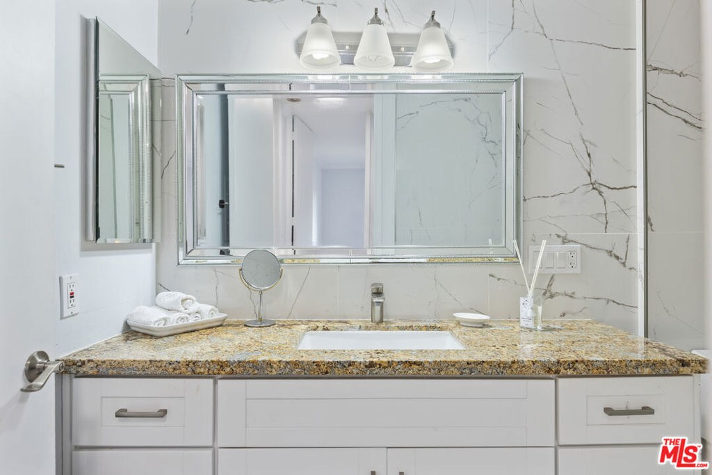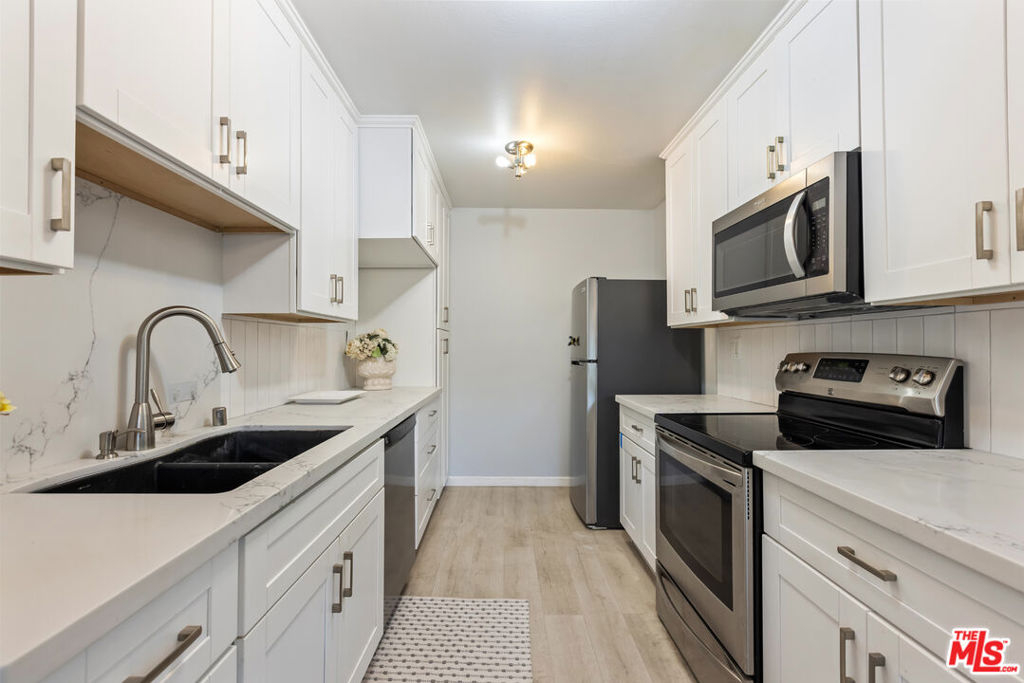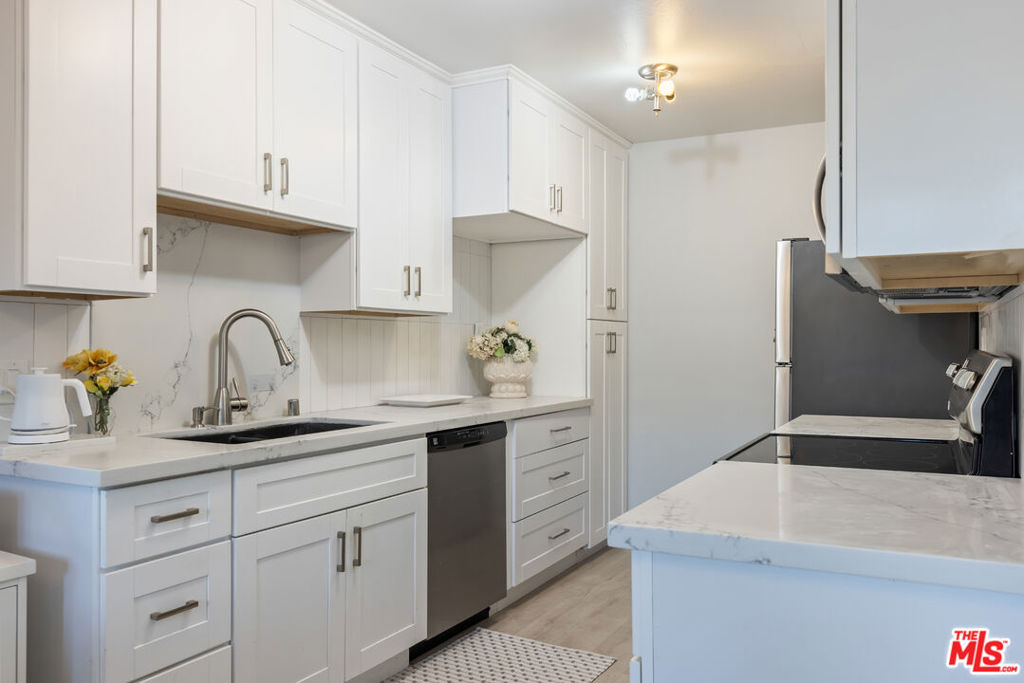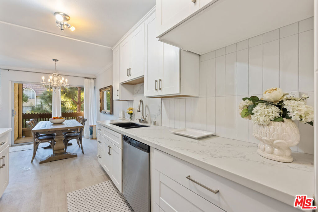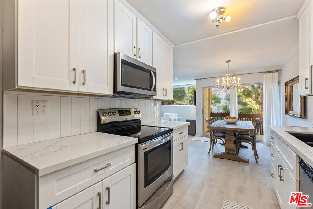This stunning top-floor condo boasts a bright, open floor plan with beautiful light vinyl flooring throughout. The gorgeous new kitchen features granite countertops, stainless steel appliances, and ample cabinet space. The bathroom has been fully remodeled, complete with new cabinetry and granite counters. Additional upgrades include all-new double-pane windows and a private balcony offering peaceful treetop views. Located in a private corner position, the unit is conveniently close to the elevator, laundry facilities, office, pool, and gym and best of all, there are no long hallways to navigate. It is one of the largest one-bedroom units in the complex and comes with two dedicated parking spaces (188 -209). This resort-style community is ideally situated near Silicon Beach, the vibrant Westfield Shopping Center with its fantastic dining and retail options, and the 10-acre Fox Hills Park, just one block away. Plus, it's only 10 minutes from LAX and the beach!