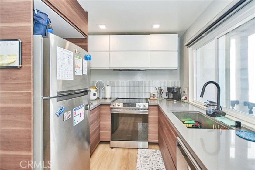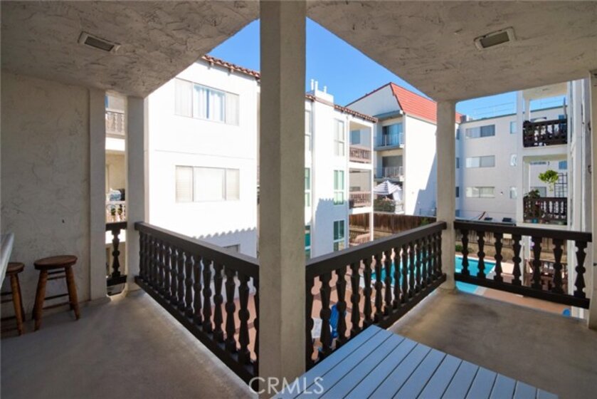 Spacious and bright third-floor unit in the charming 27-unit Seville complex, located directly across from Fox Hills Park. This well-designed and remolded home features vinyl plank flooring, a sunken living room with fireplace, and an updated kitchen with quartz countertops, stainless steel appliances, and ample storage. Enjoy a large covered L-shaped balcony with pool views, accessible from both the living room and kitchen. The unit includes a remodeled bathroom, a relaxing primary bedroom with a walk-in closet, double-pane windows, elevator access, and secure subterranean parking. Conveniently located near shopping, dining, Marina del Rey, beaches, Playa Vista, and LAX.