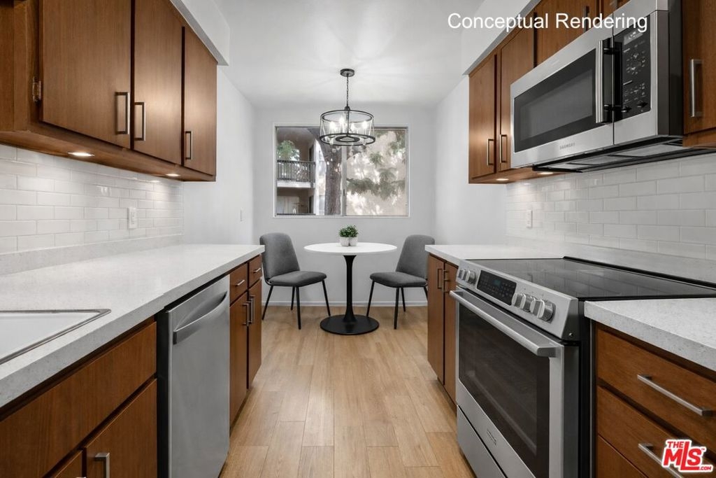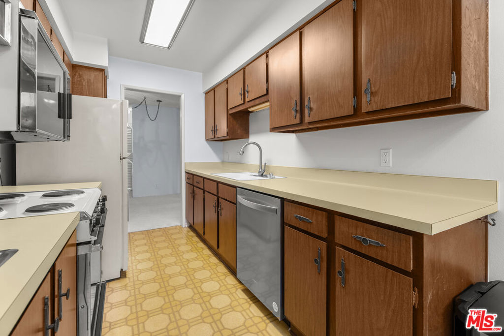 Set within the popular and serene Raintree community, this rarely available corner residence offers an expansive 2-bedroom, 2-bath layout with a den and abundant natural light throughout. Spanning over 1,300 square feet, this is one of the largest floor plans in the community and a compelling opportunity for a buyer seeking space, location, and long-term value in the heart of Culver City. Recently refreshed with new carpet and paint, the home offers a flexible layout that can be reimagined and updated to suit a variety of lifestyles. The living room features a decorative fireplace, the den includes a wet bar, and the oversized balcony extends the living space outdoors. With generous room sizes, a walk-in closet in the primary suite, and excellent natural light, the property presents strong potential for a thoughtful renovation. This residence represents an excellent value within Raintree, offering a rare chance to personalize one of the community's most desirable floor plans. Whether updating now or over time, the size, layout, and corner-unit positioning provide a strong canvas for customization. The home includes two assigned parking spaces and is located within a beautifully maintained, 24/7 gated community with roaming security. Raintree is known for its peaceful setting while being centrally located in the heart of Culver City. Residents enjoy resort-style amenities including a swimming pool, community room, and lush landscaped grounds. The HOA includes water, gas, cable, and internet service. A quiet retreat with exceptional convenience, this home combines security, amenities, and upside potential just moments from shopping, dining, and major Westside destinations.